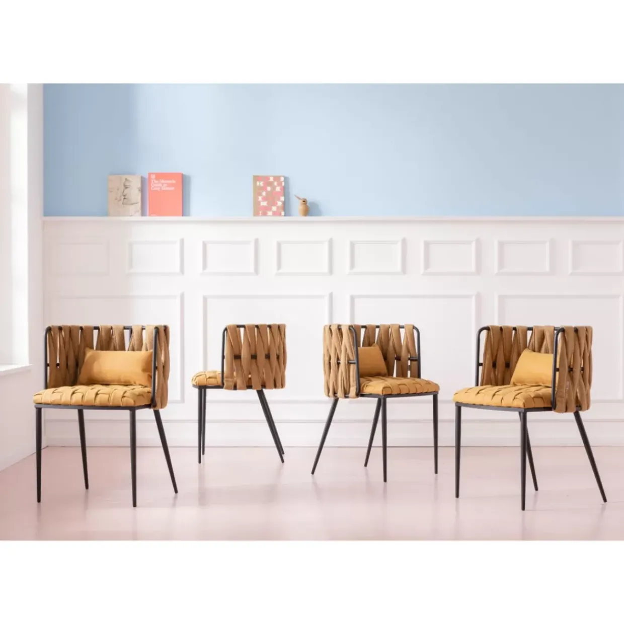 - Gemutlicher Armlehnstuhl,Extra Stylisch Mit Flechtoptik In Der Trendfarbe Curry
