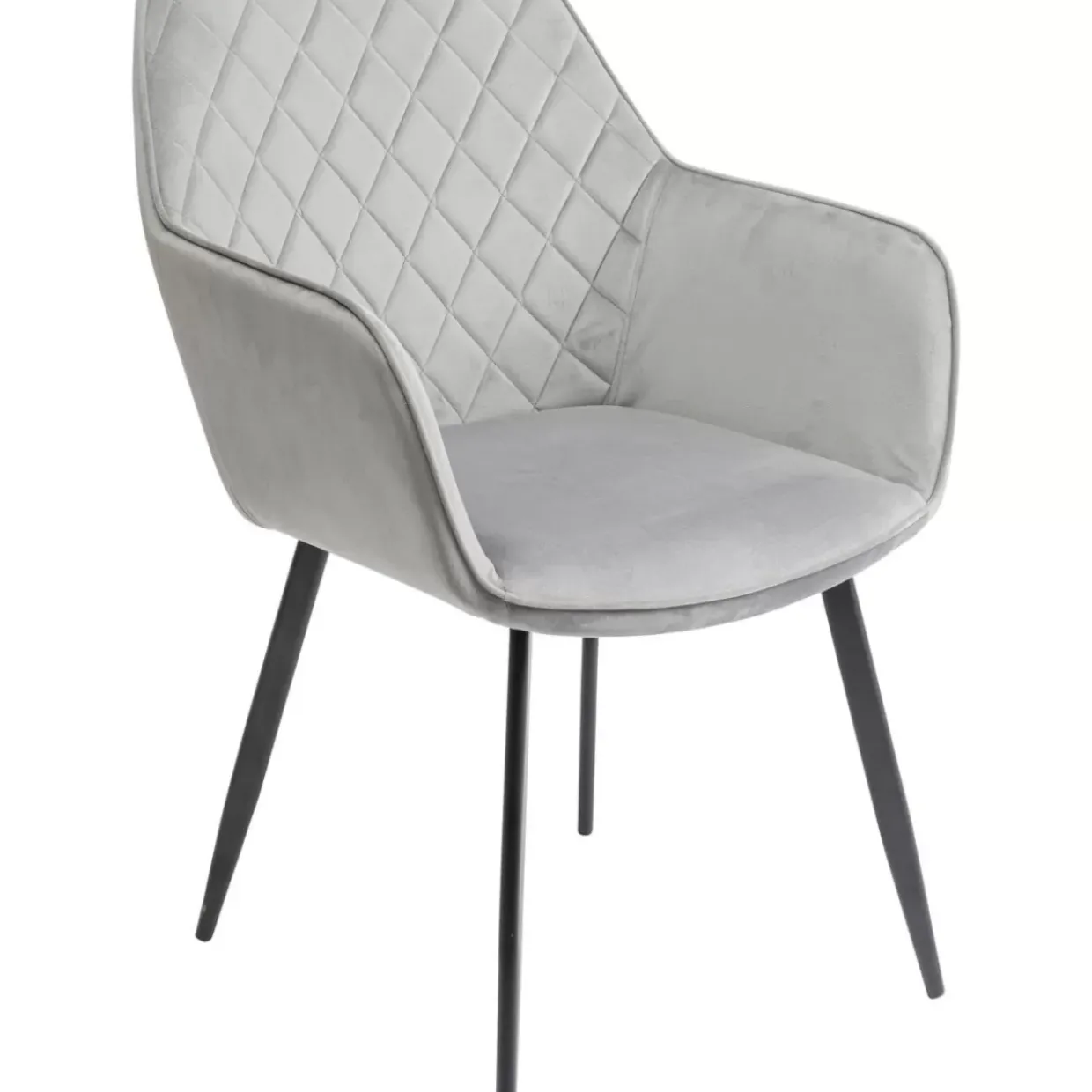 - Stylischer Armlehnstuhl In Anziehender Retro-Optik Mit Weichem Samtbezug In Grau Und Schicker Steppung