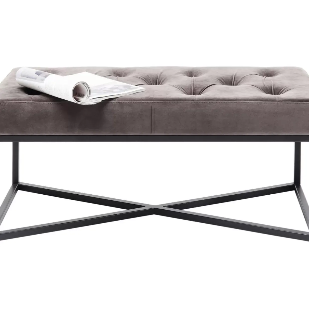 - Unwiderstehlich! Eine Samtig Graue Polsterbank Mit Markantem,Schwarzem Gestell,Die Fur Coolen Luxus Steht Und Gleichzeitig Superpraktisch Ist