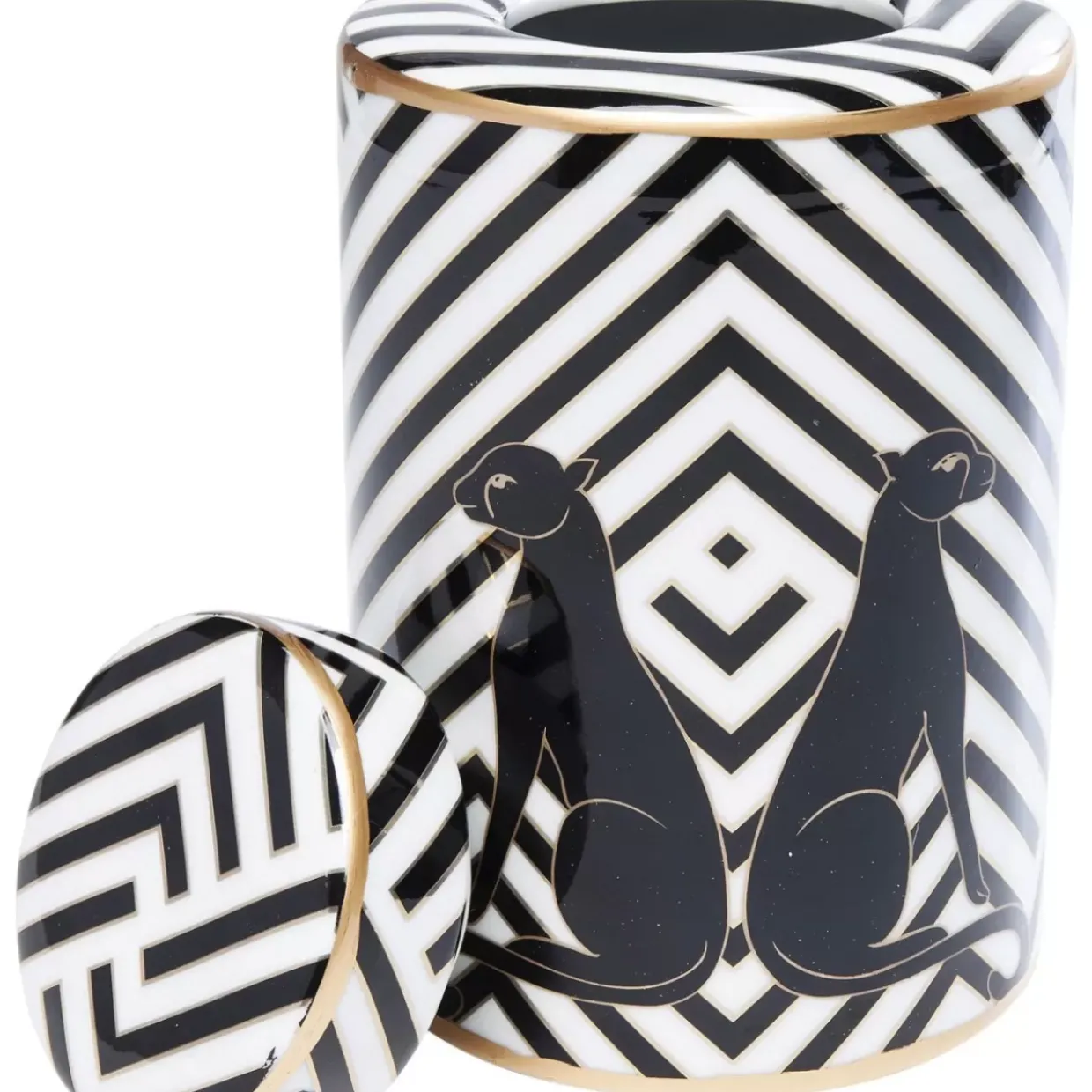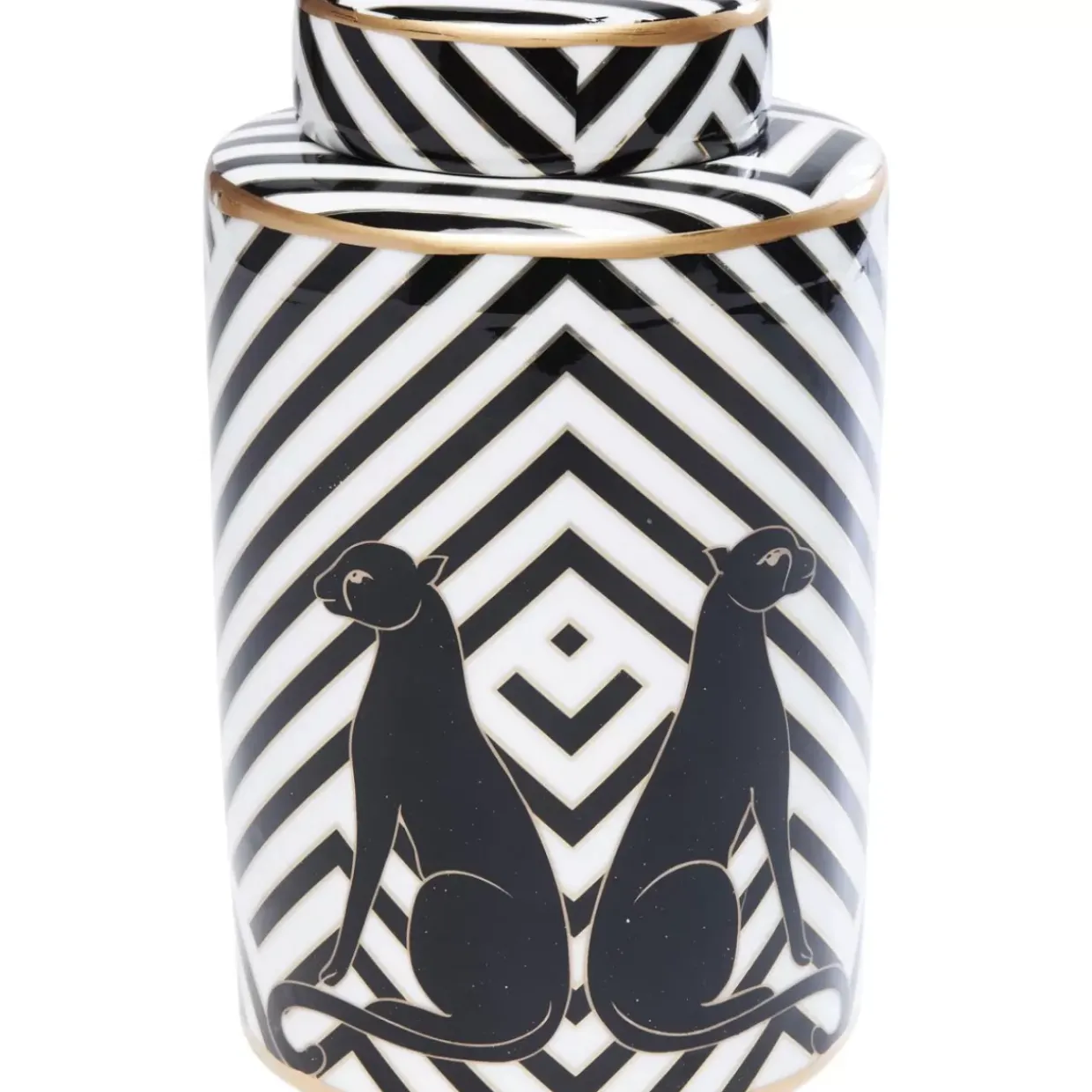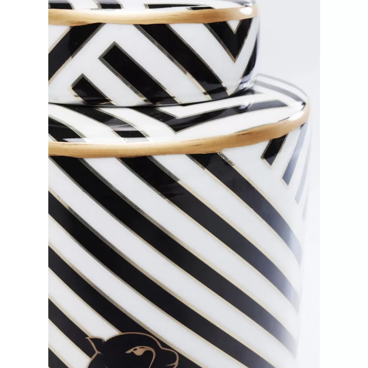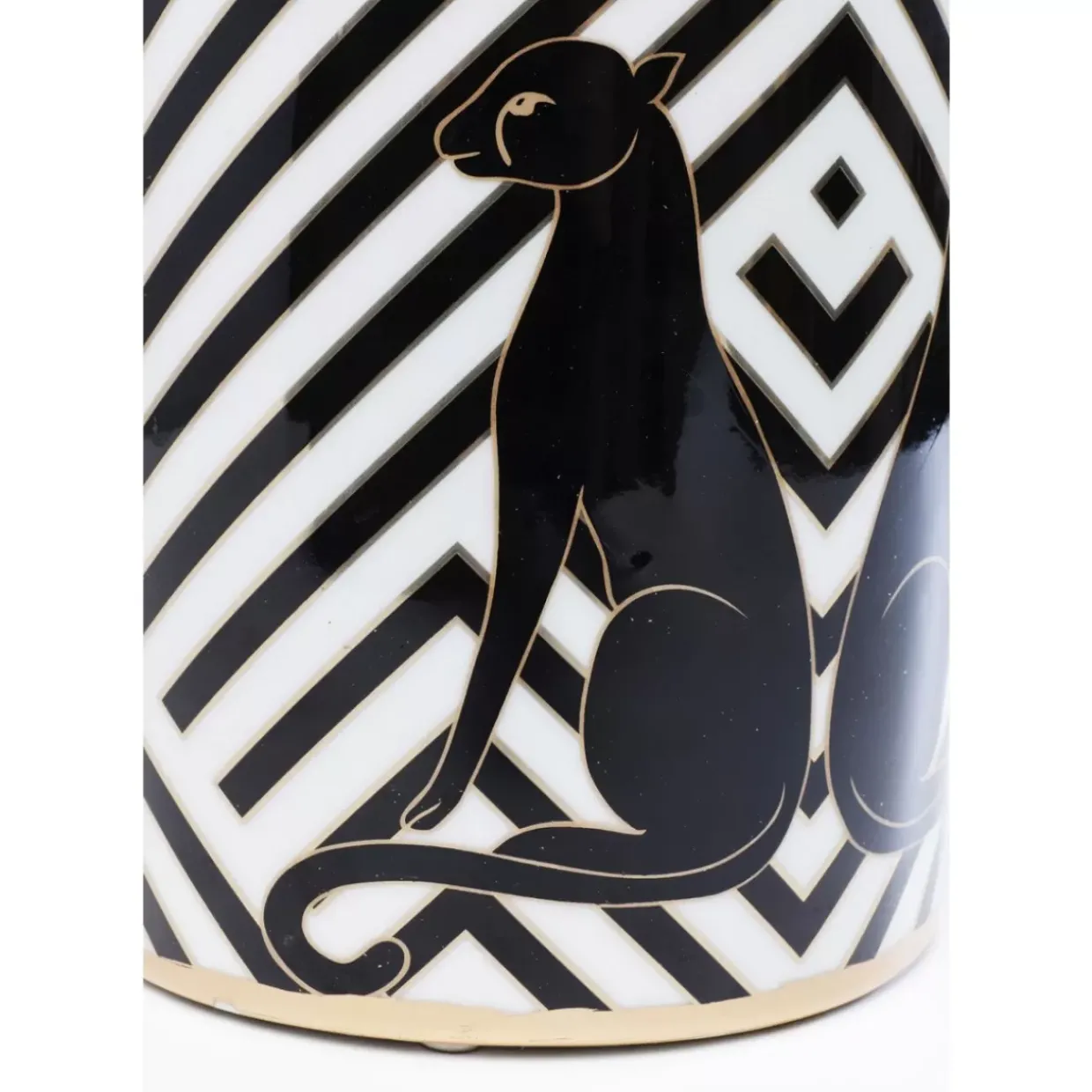 - Superedles Design: Schwarz-Weises Blockstreifenmuster Im Typischen Art-Deco-Stil,Golddetails Und Die Stilisierten Panther