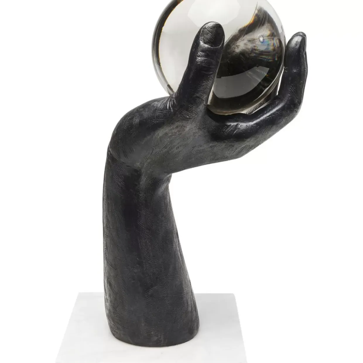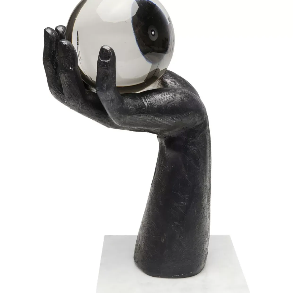 - Markante Skulptur Einer Hand Mit Glaskugel – Auf Einem Sockel Aus Echtem Marmor