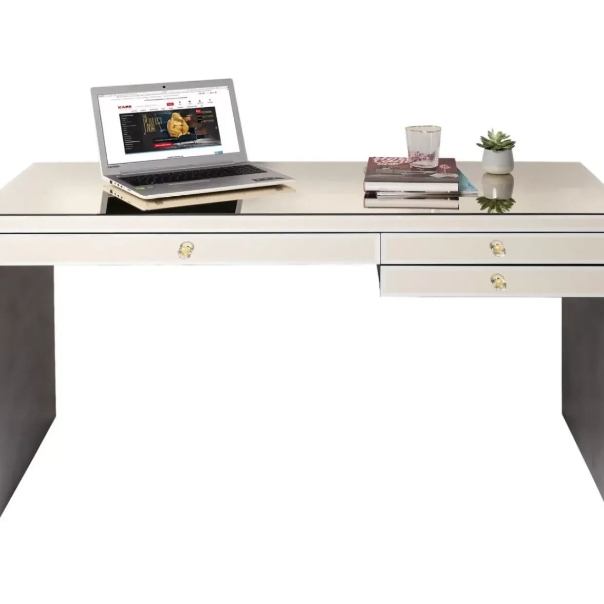 - Verspiegelter Schreibtisch Mit Drei Schubladen Und Hochwertigem Facettenschliff