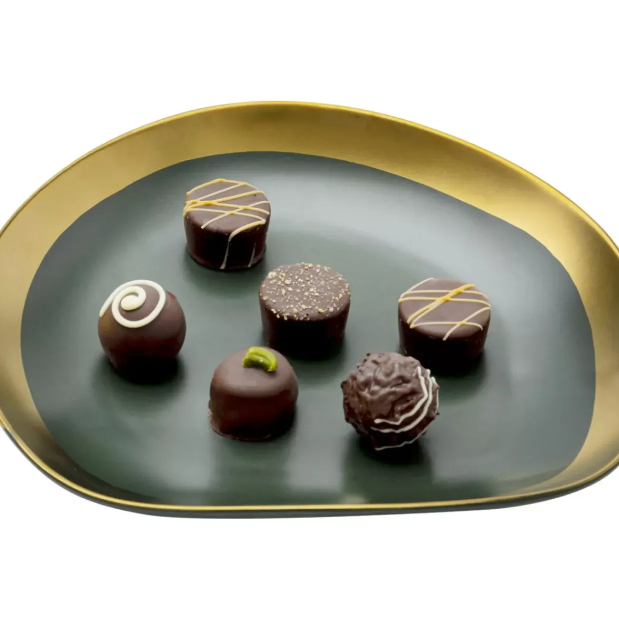 - Edle,Von Hand Aus Keramik Hergestellte Geschirrserie In Einem Sehr Dunklen Grun Mit Mattem Goldrand