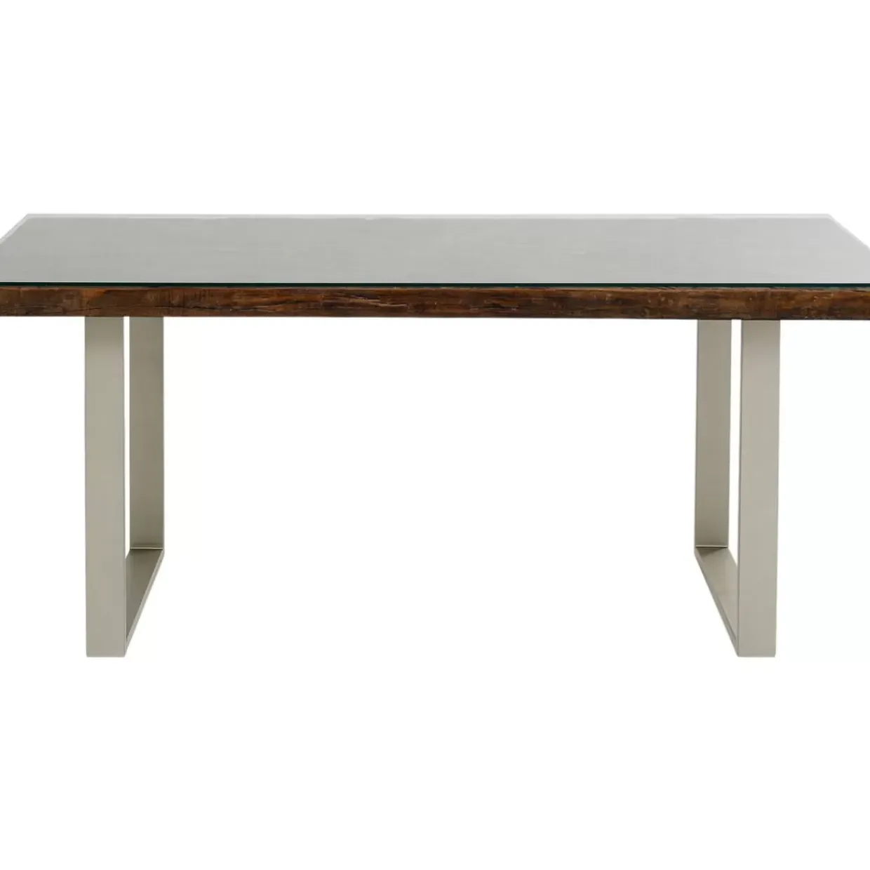- Rechteckiger,Dunkler Esstisch Aus Recyceltem Mango-Und Akazienholz Mit Glasplatte Und Kufen In Silber