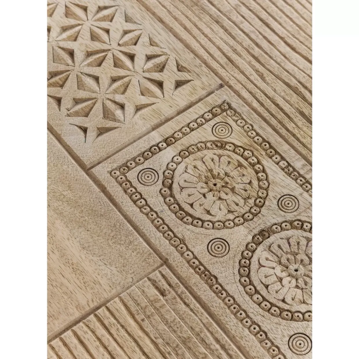 - Rechteckiger,Handgefertigter Tisch Aus Mango-Massivholz Mit Dekorativen Schnitzereien Und Zwei Schuben Fur Vier Bis Sechs Personen