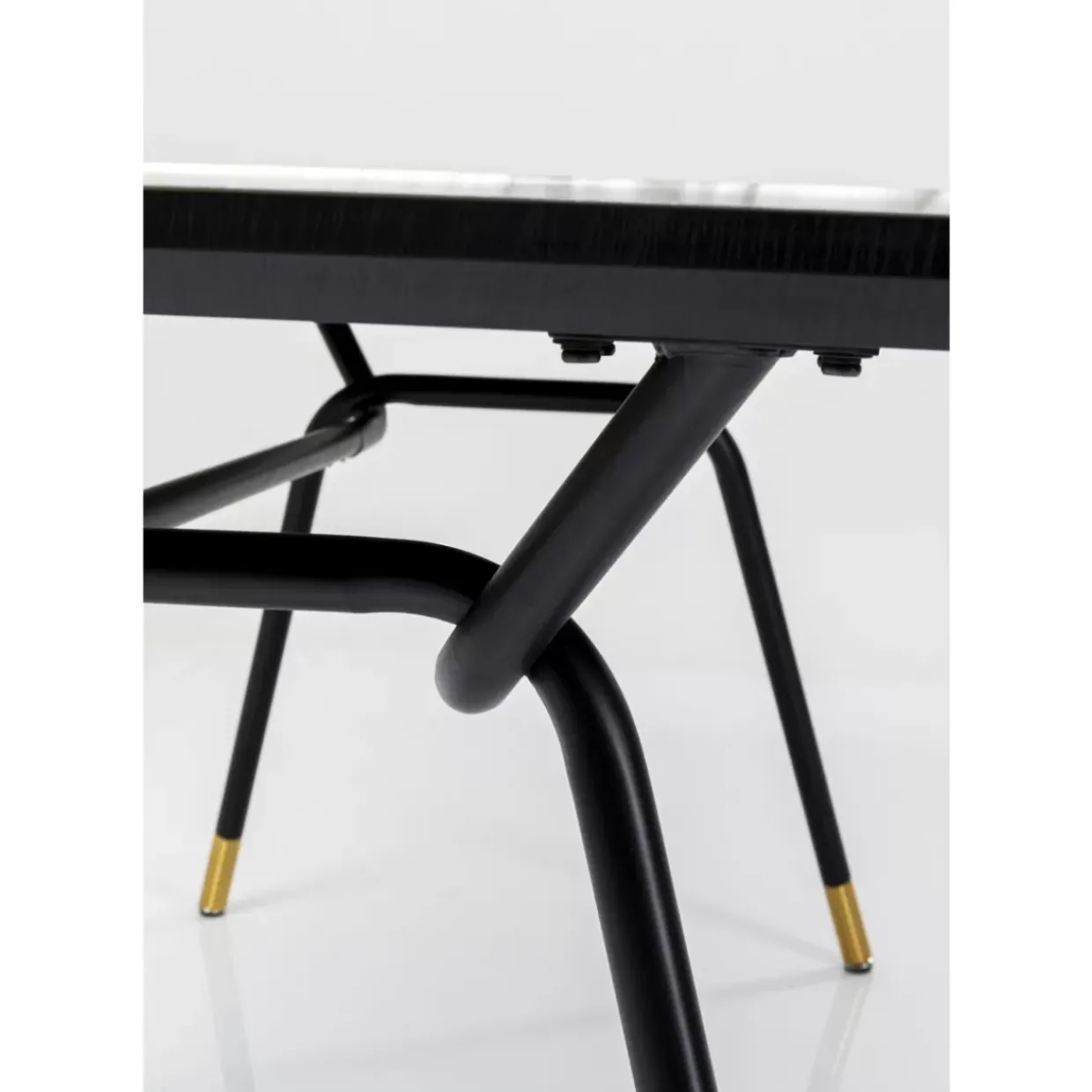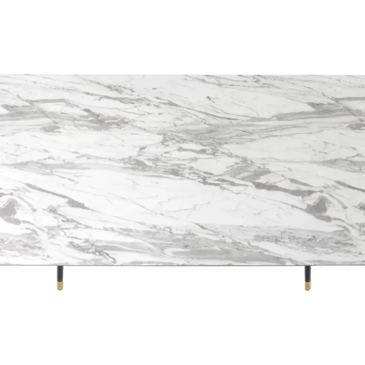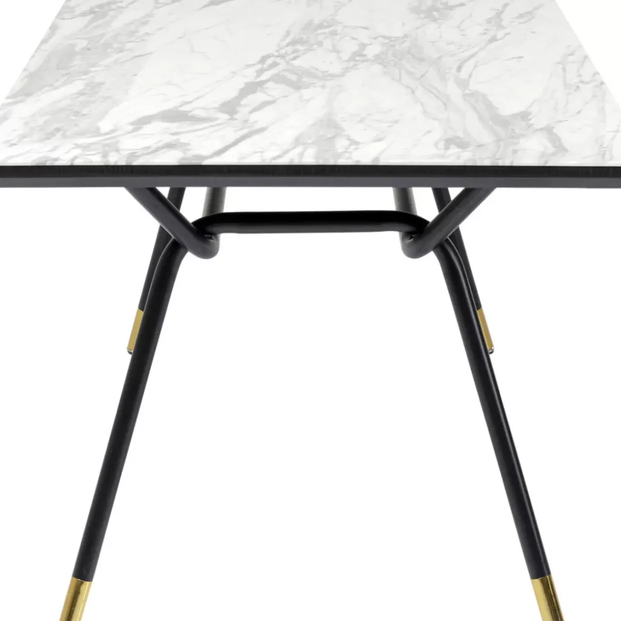 - Rechteckiger Esstisch Mit Tischplatte Im Marmor-Look,Schwarzem Stahlgestell Und Messingfarbenen Fusmanschetten