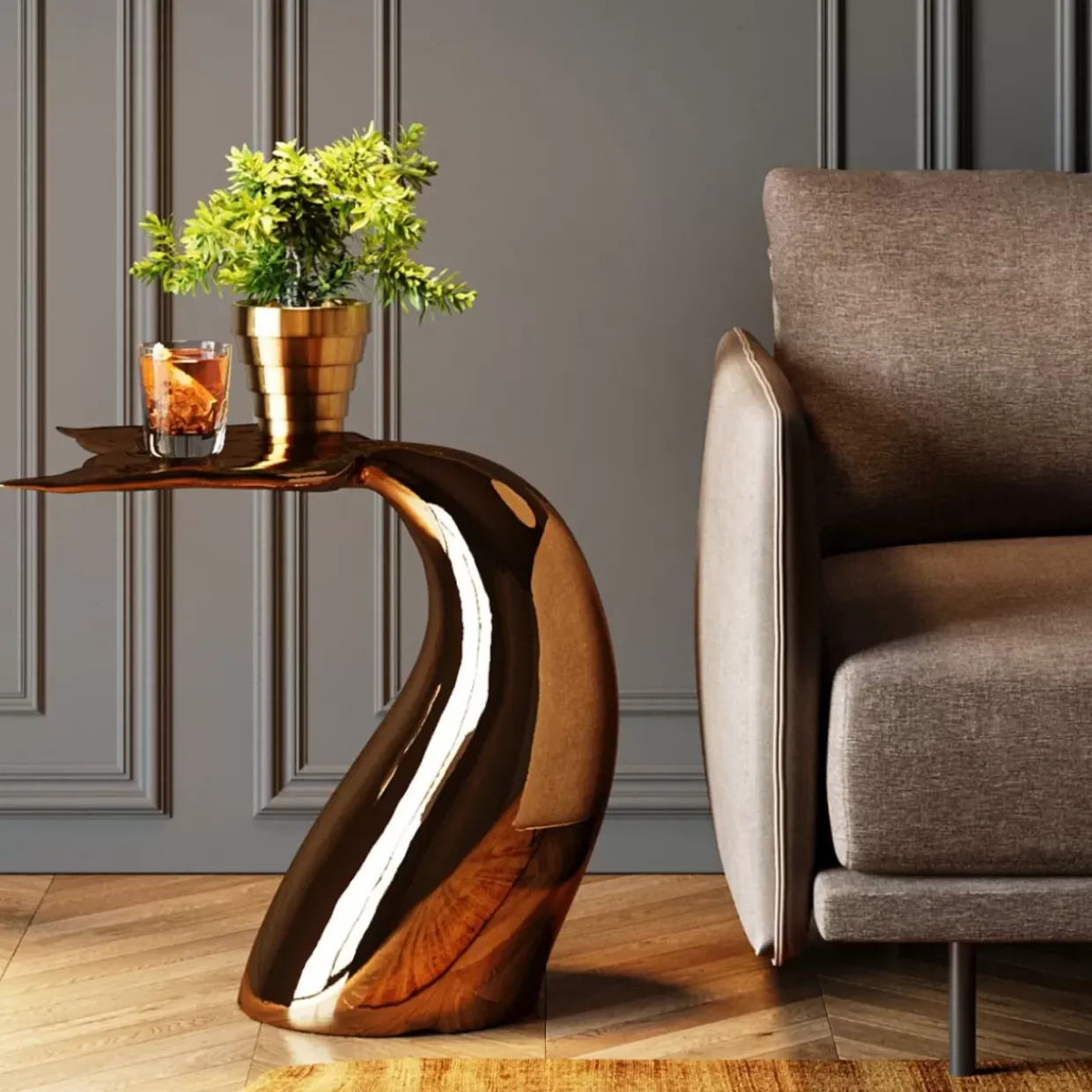 - Goldener Beistelltisch Aus Poliertem Metall