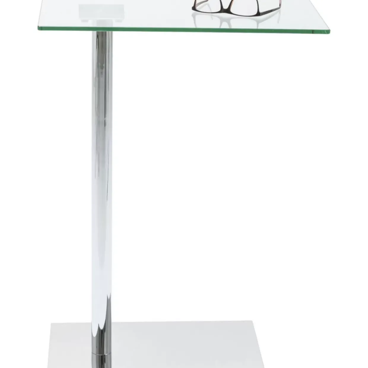 - Moderner,Rechteckiger Beistelltisch Mit Einer Tischplatte Aus Glas Und Einem Verchromten Stahlfus