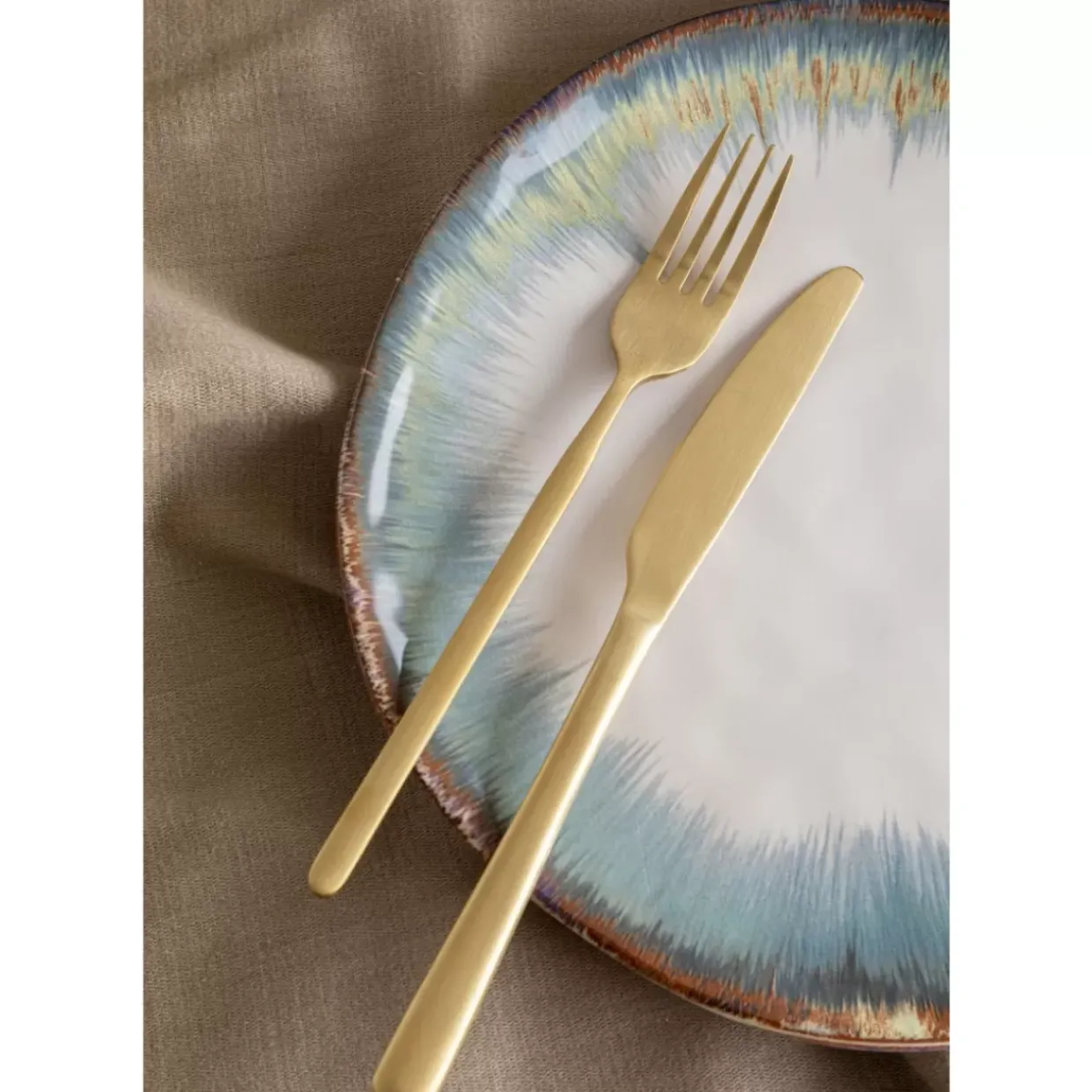 - 16-Teiliges Besteck-Set In Modernem Design Und Mit Einer Matten Messing-Beschichtung