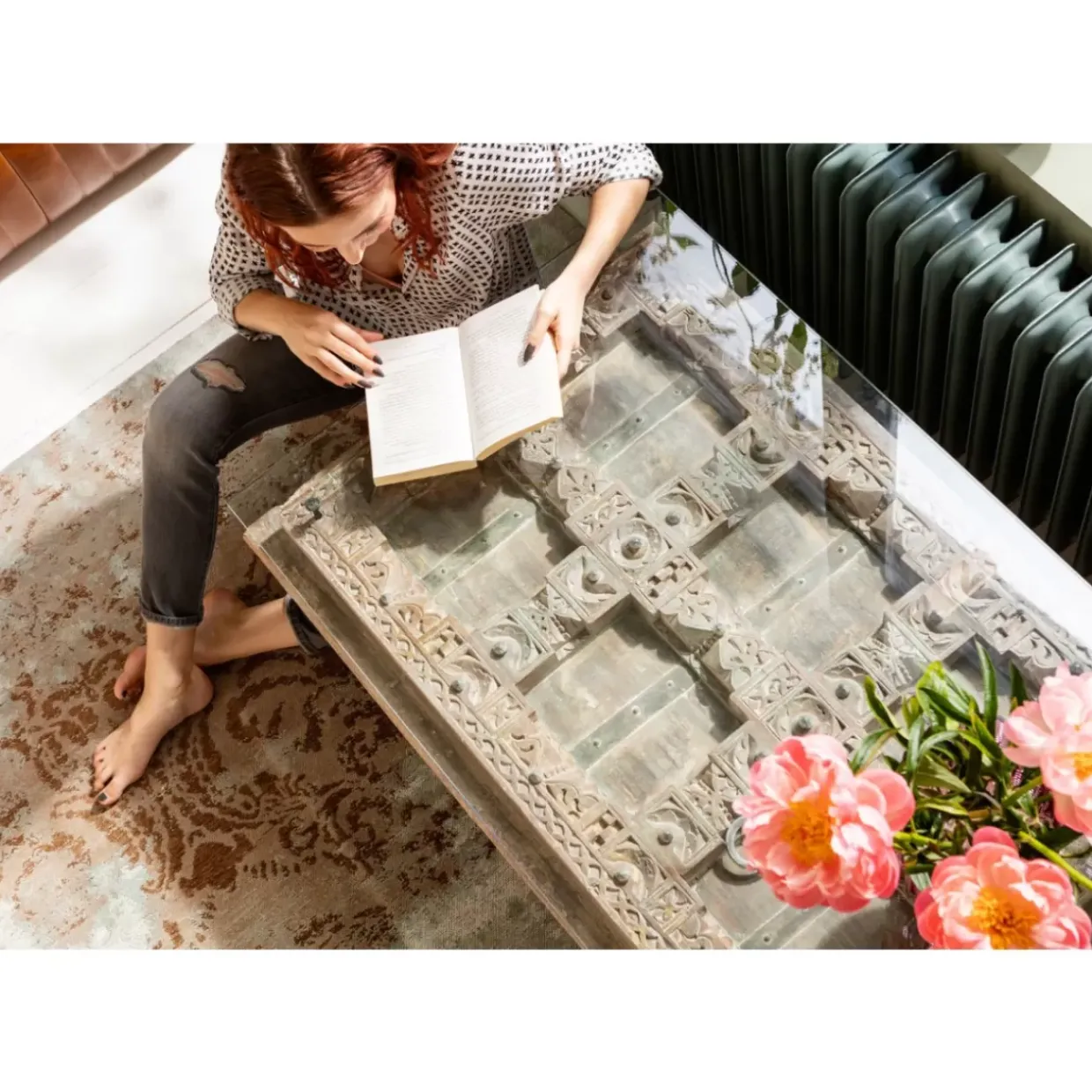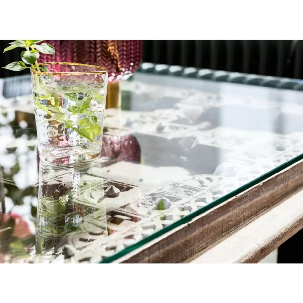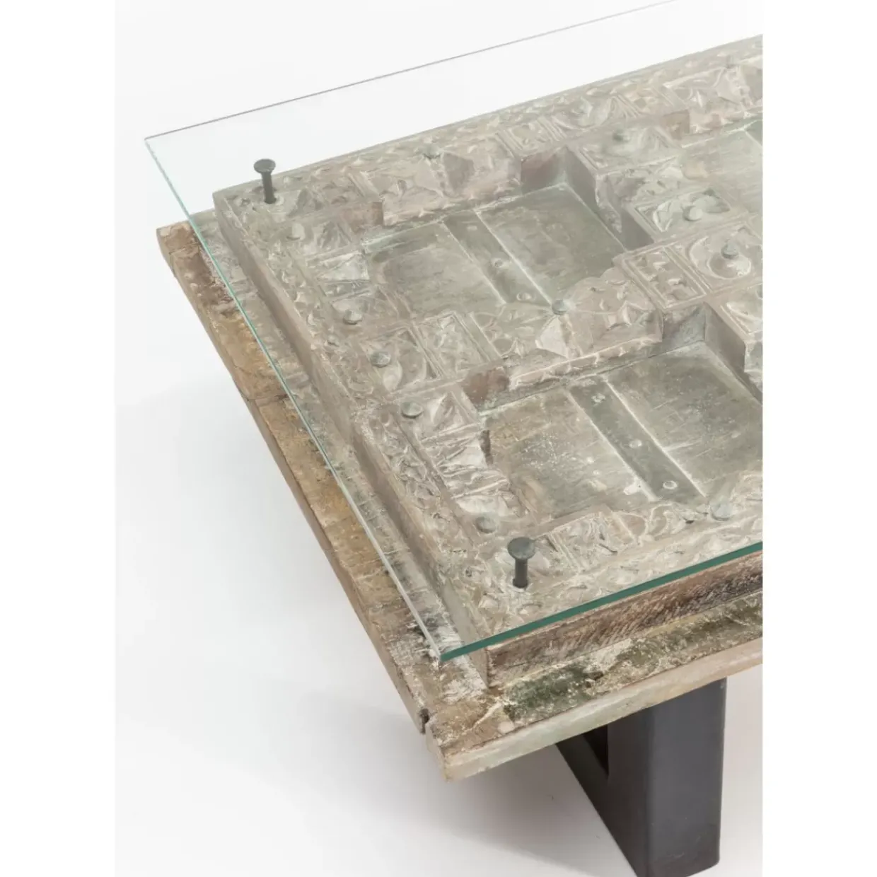 - Rechteckiger Couchtisch Mit Ausergewohnlichem Ethno-Design Aus Gewachstem Mango-Massivholz,Lackiertem Stahl Und Glas