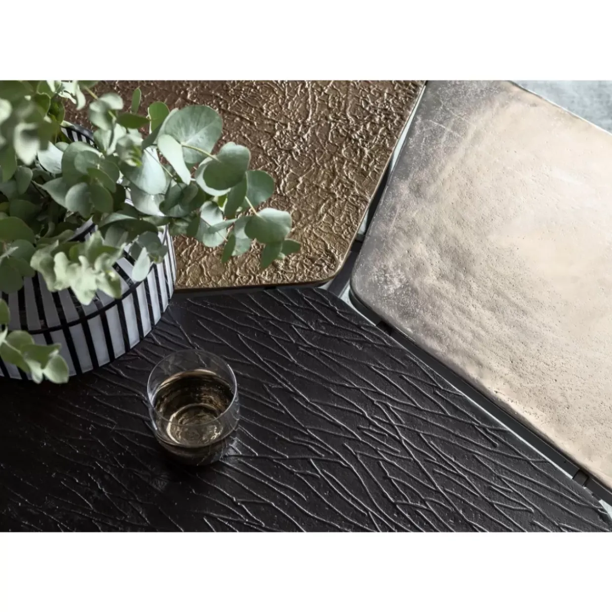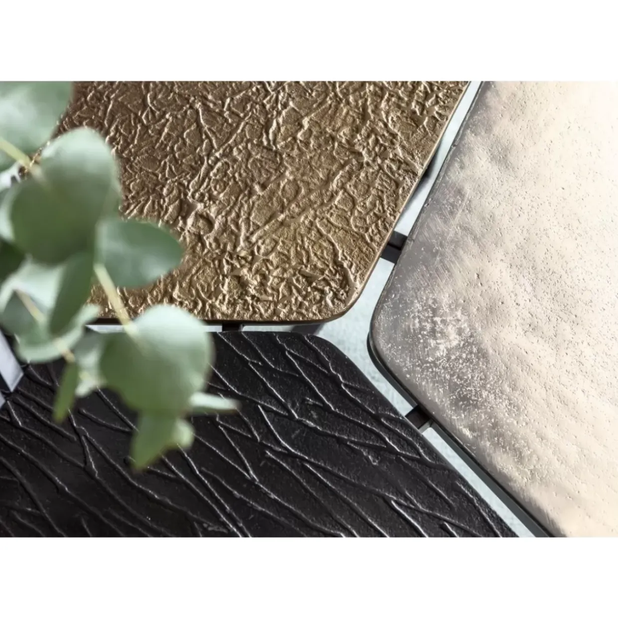 - Tischplatte Aus Drei Asymmetrischen Elementen Mit Unterschiedlichen Oberflachenstrukturen In Den Farben Bronze,Anthrazit Und Grauweis