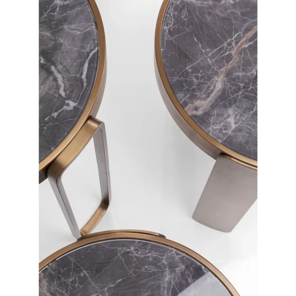 - Extravaganter Beistelltisch Im 3Er-Set: Drei Runde Couchtische In Der Trendfarbe Bronze In Verschiedenen Grosen Und Mit Edlem Marmor-Print