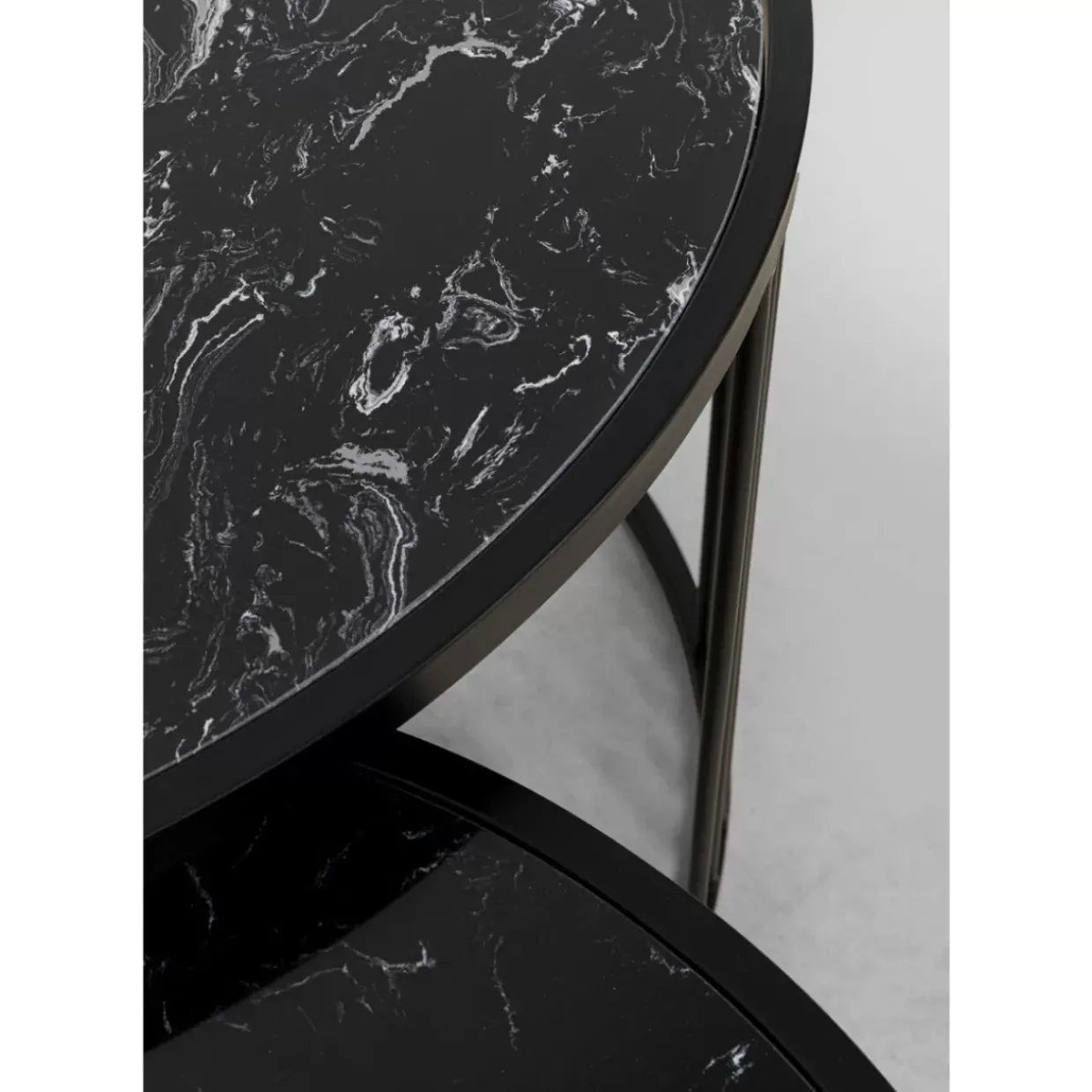 - Set Aus Zwei Modernen Beistelltischen Aus Metall In Schwarz Mit Marmor (Mineralmarmor)