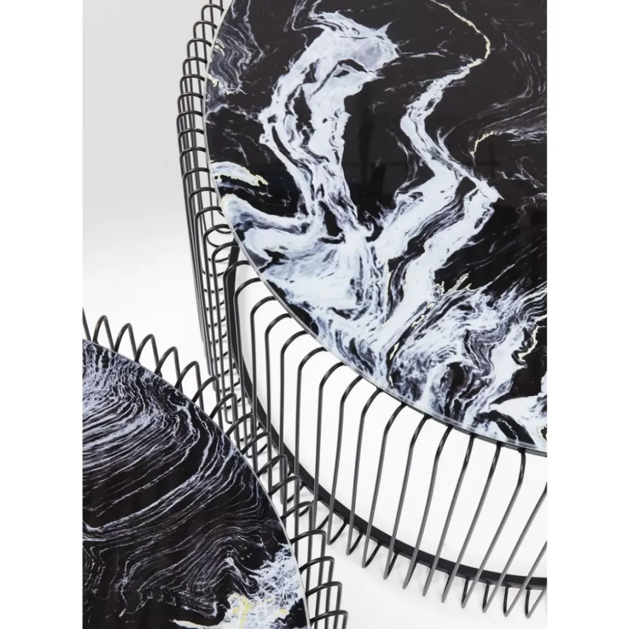 Couchtisch Wire Glas Marble Schwarz (2/Set)