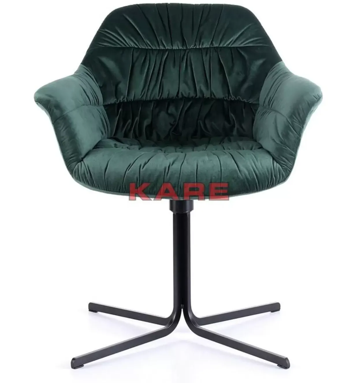 - Voluminos Gepolsterter Drehstuhl Mit Armlehnen,Samtig Grunem Bezug Und Stabilem,Schwarzem Sternfus Aus Stahl