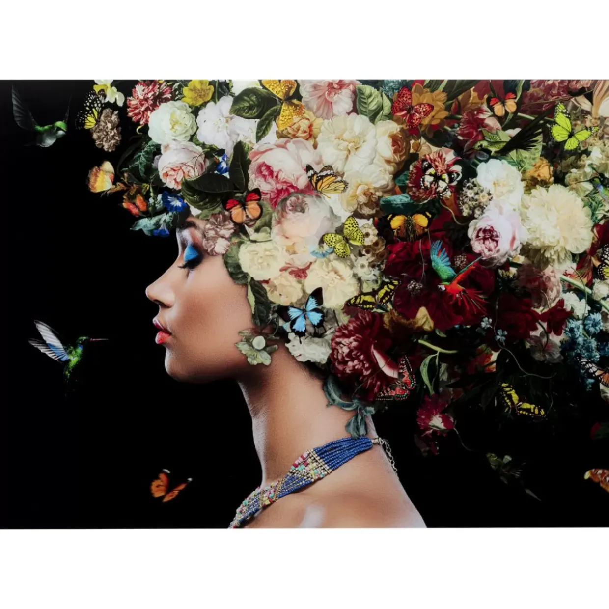 - Groses Glasbild Mit Bluten,Schmetterlingen,Vogeln Und Portrait