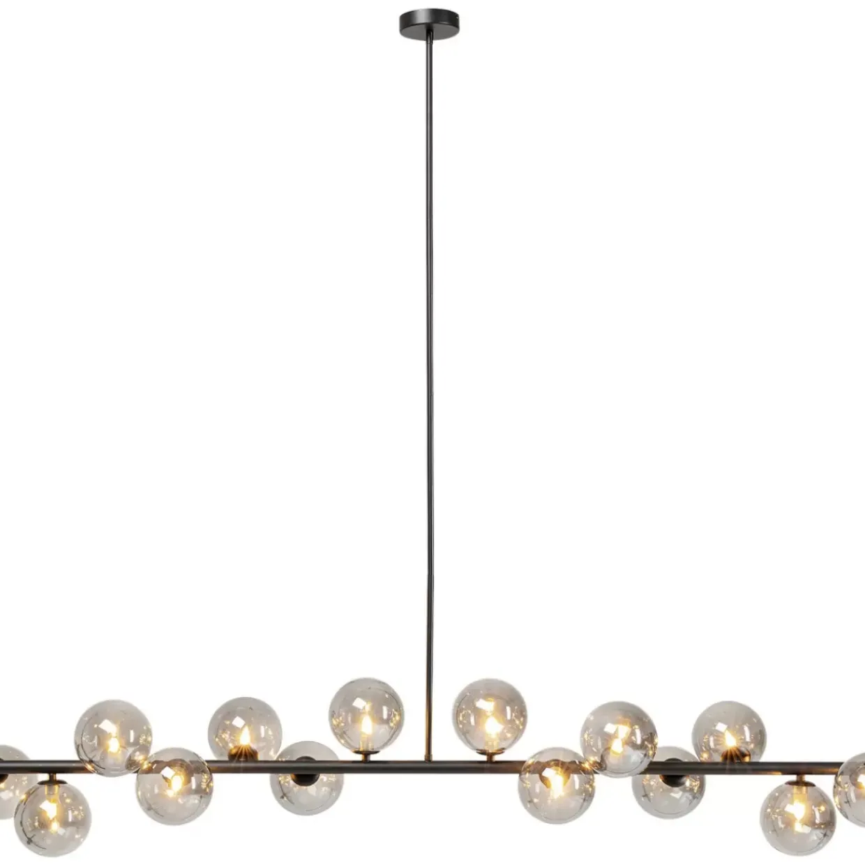 - Grose,Edle Hangeleuchte Im Querformat Mit Einem Schwarzen Gestell Und 14 Leuchtenschirmen Aus Glas
