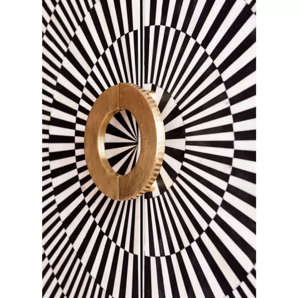 - Luxurioser Wohnzimmer-Schrank Im Zebra-Look Mit Goldfarbenem,Lackiertem Gestell Und Rundem Griff.