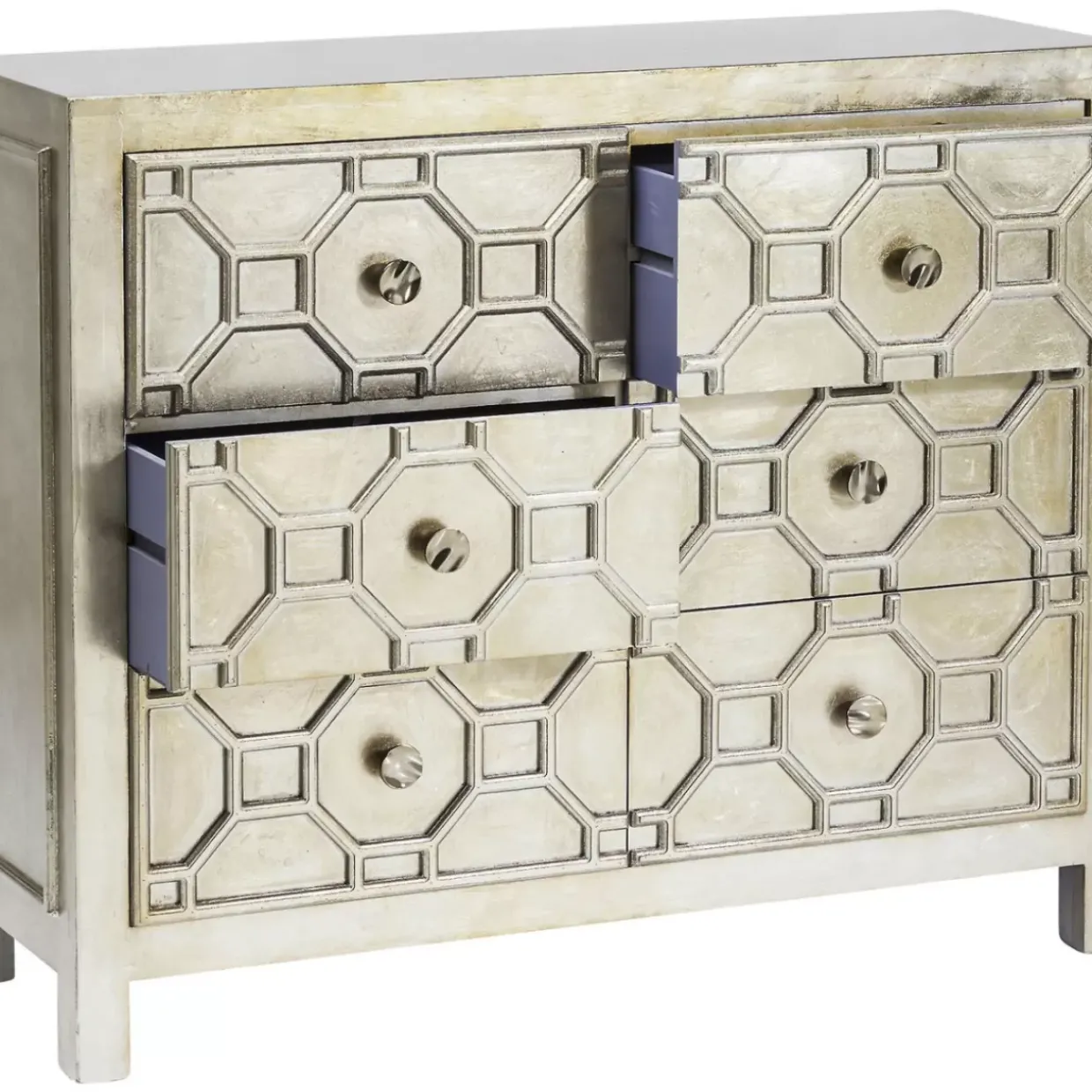 - Bildschone Kommode Mit Verzierter Front,Sechs Schubladen,Lackiert In Einem Sanften,Warmen Metallic-Ton