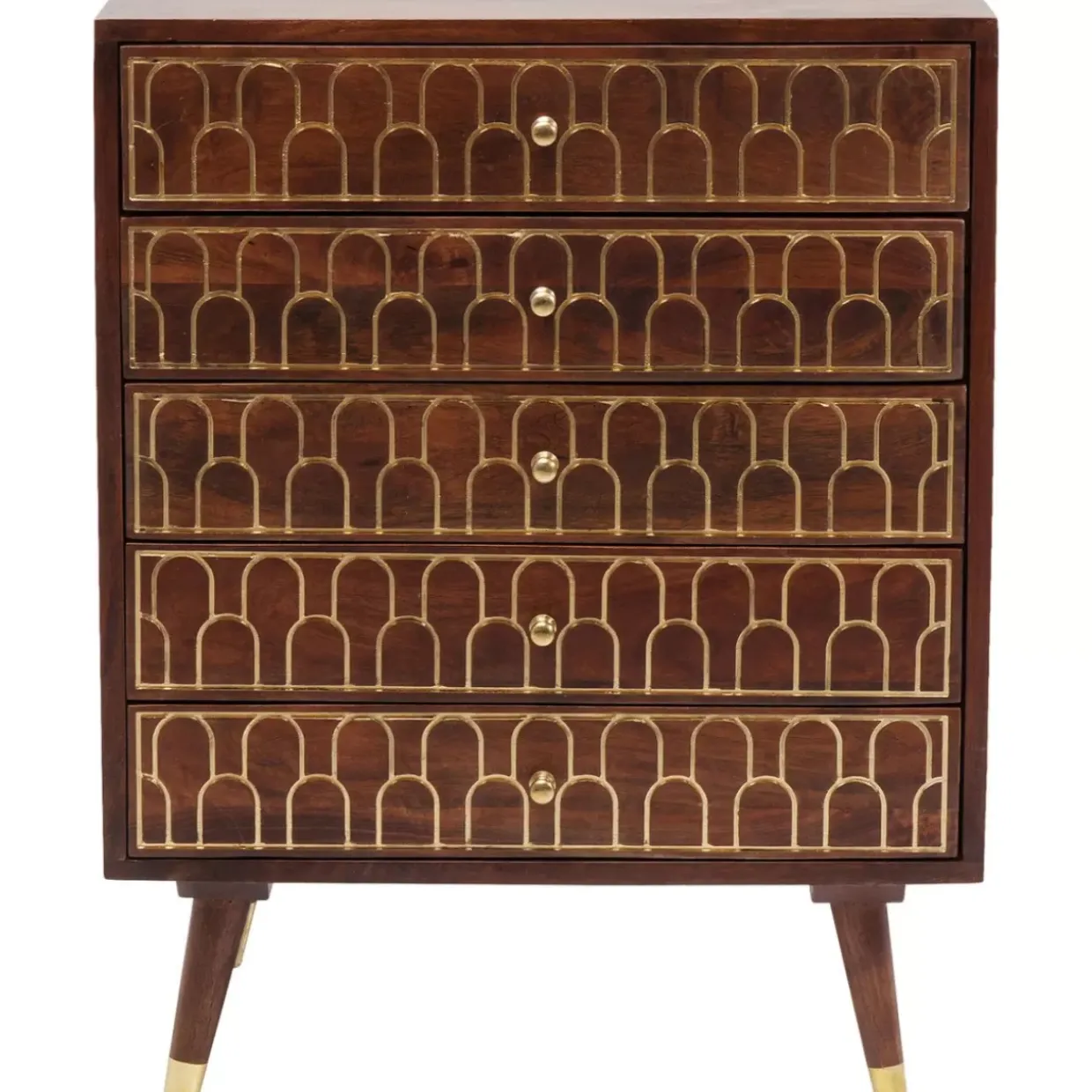 - Handgefertigte,Kompakte Kommode Aus Mango-Massivholz Mit Eingravierten,Orientalischen Gold-Verzierungen Und Funf Schuben