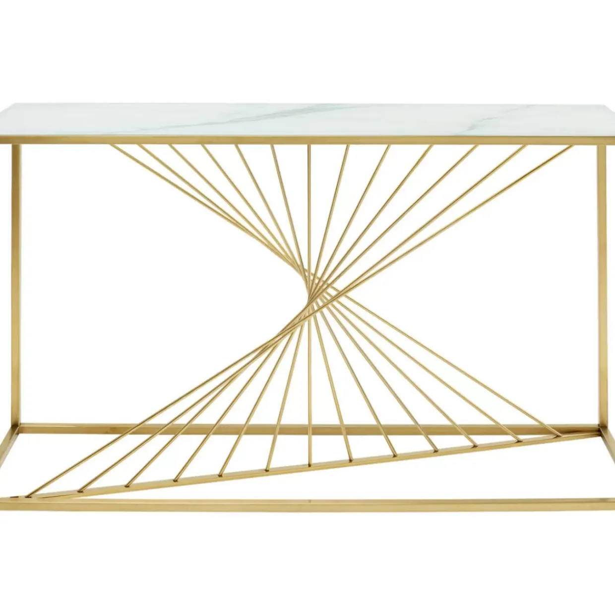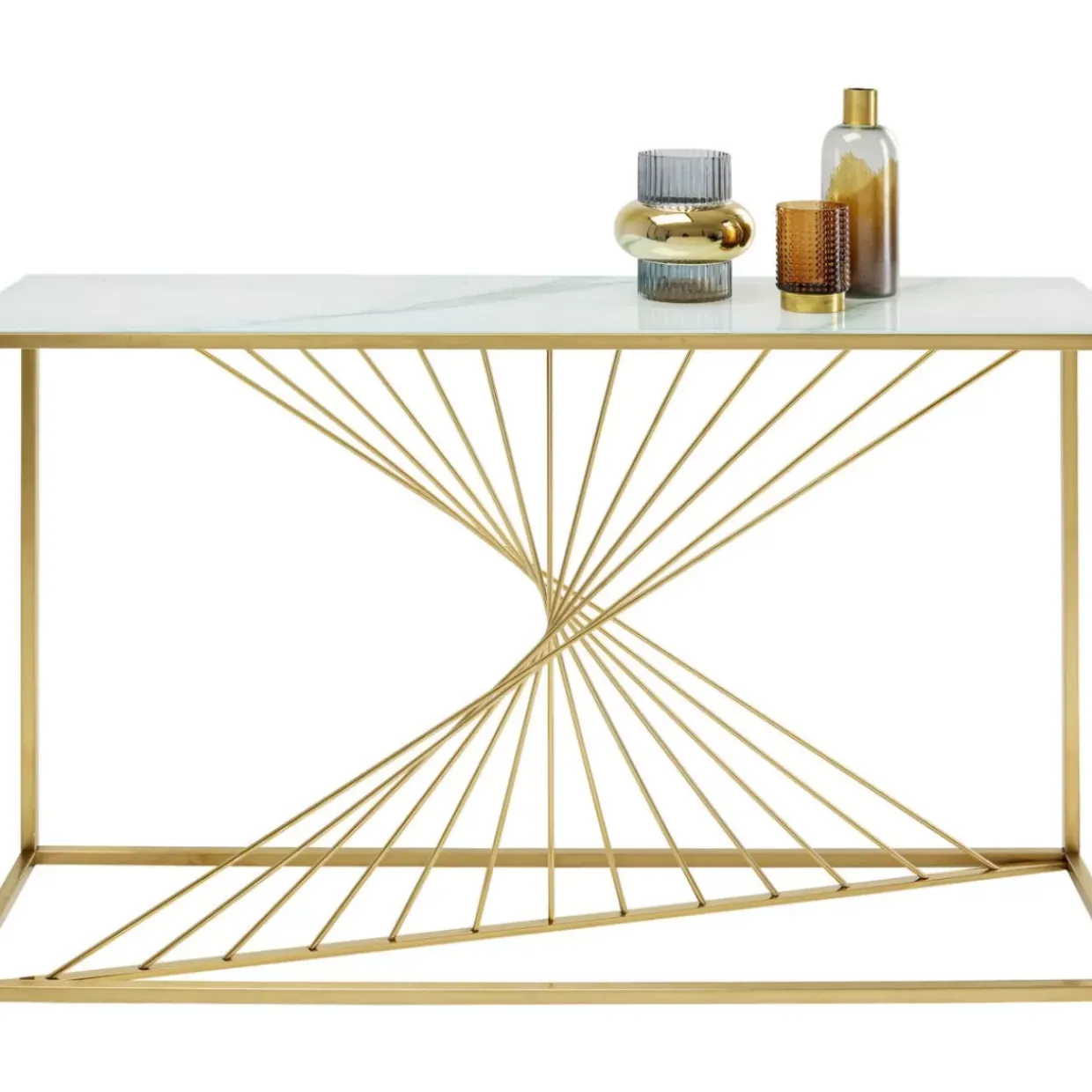 - Goldfarbene Konsole Mit Exklusivem Gestell Und Einer Glasplatte In Marmor-Optik
