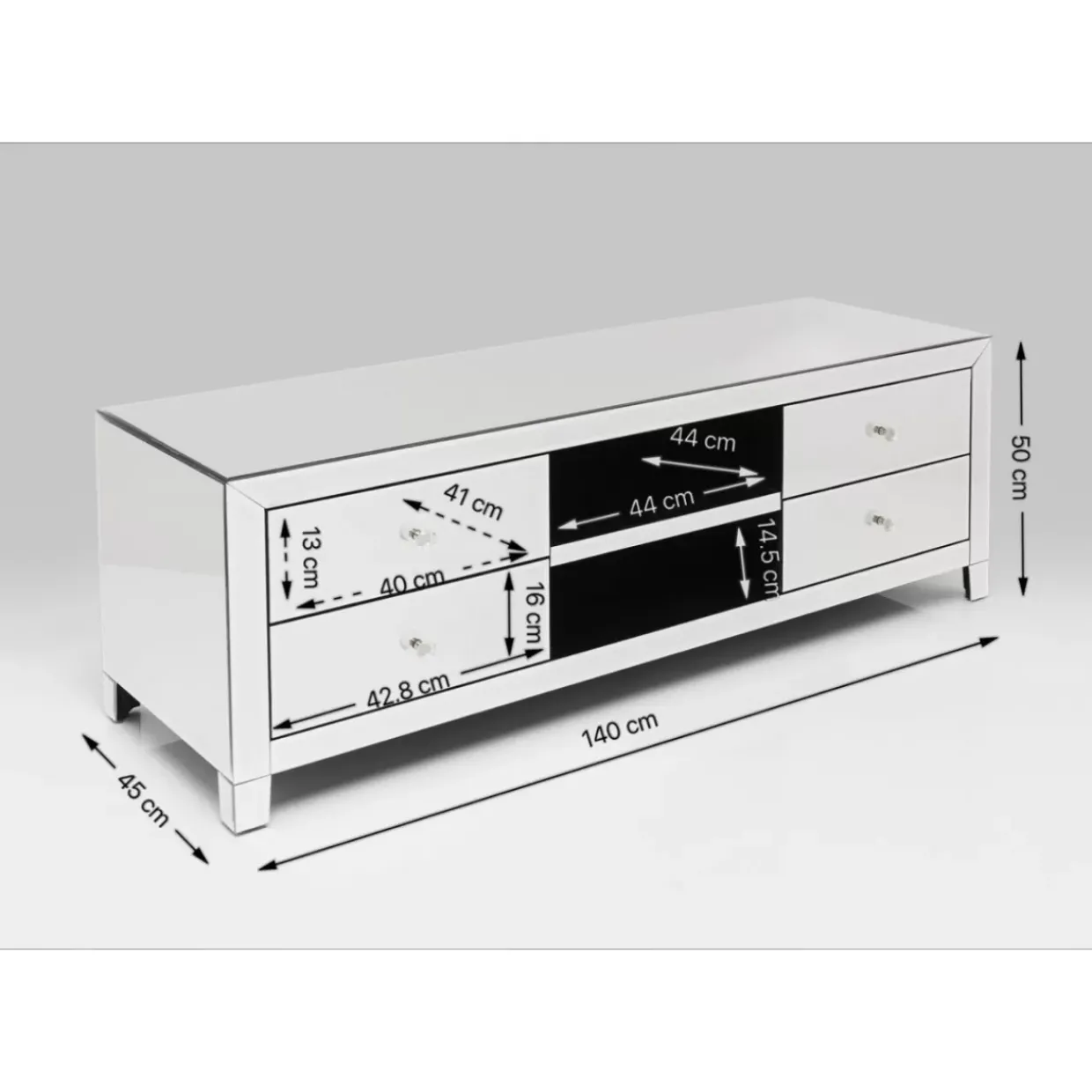 - Luxurios Verspiegeltes Tv-Board Mit Zwei Fachern,Vier Schubladen Und Zwei Praktischen Kabeloffnungen Auf Der Ruckseite