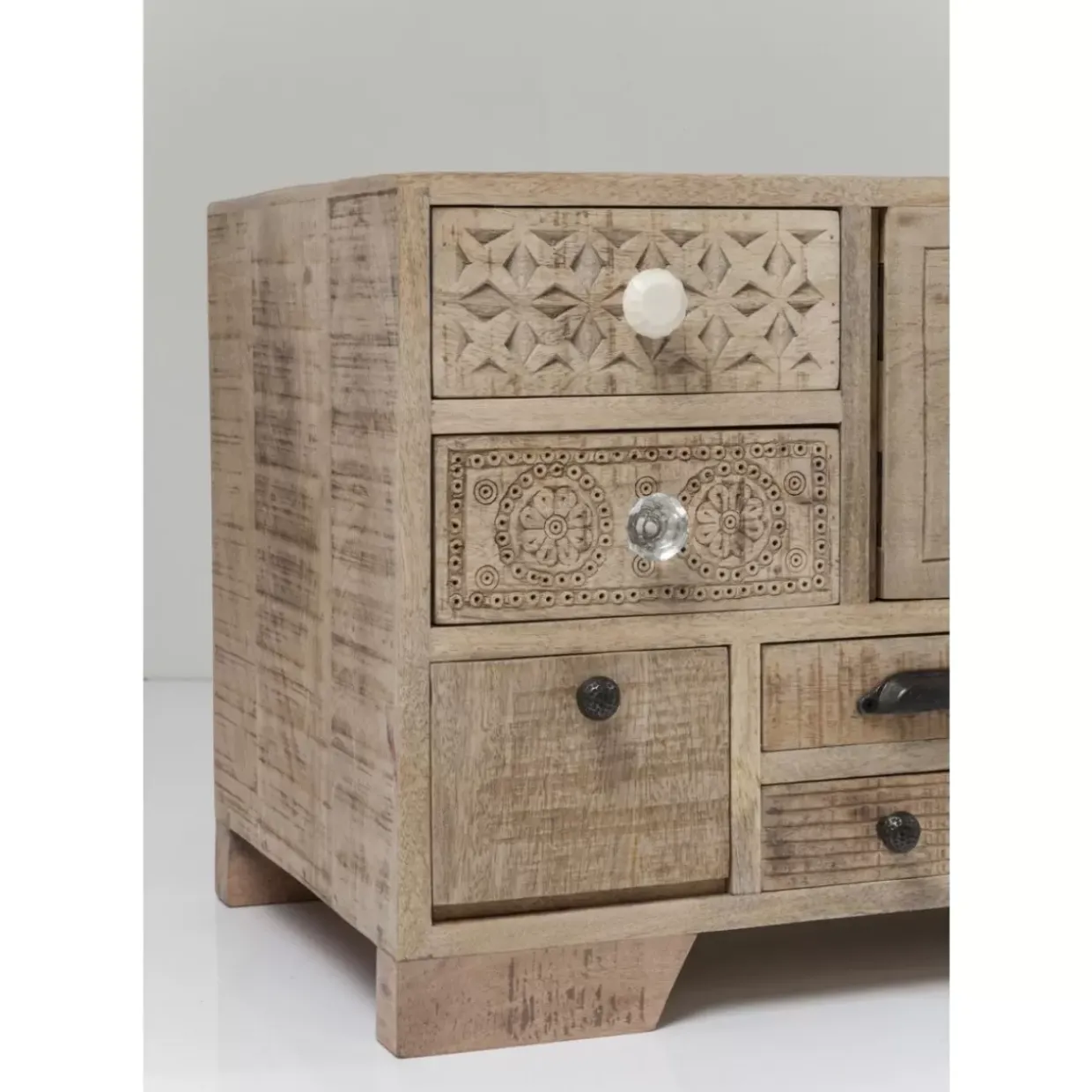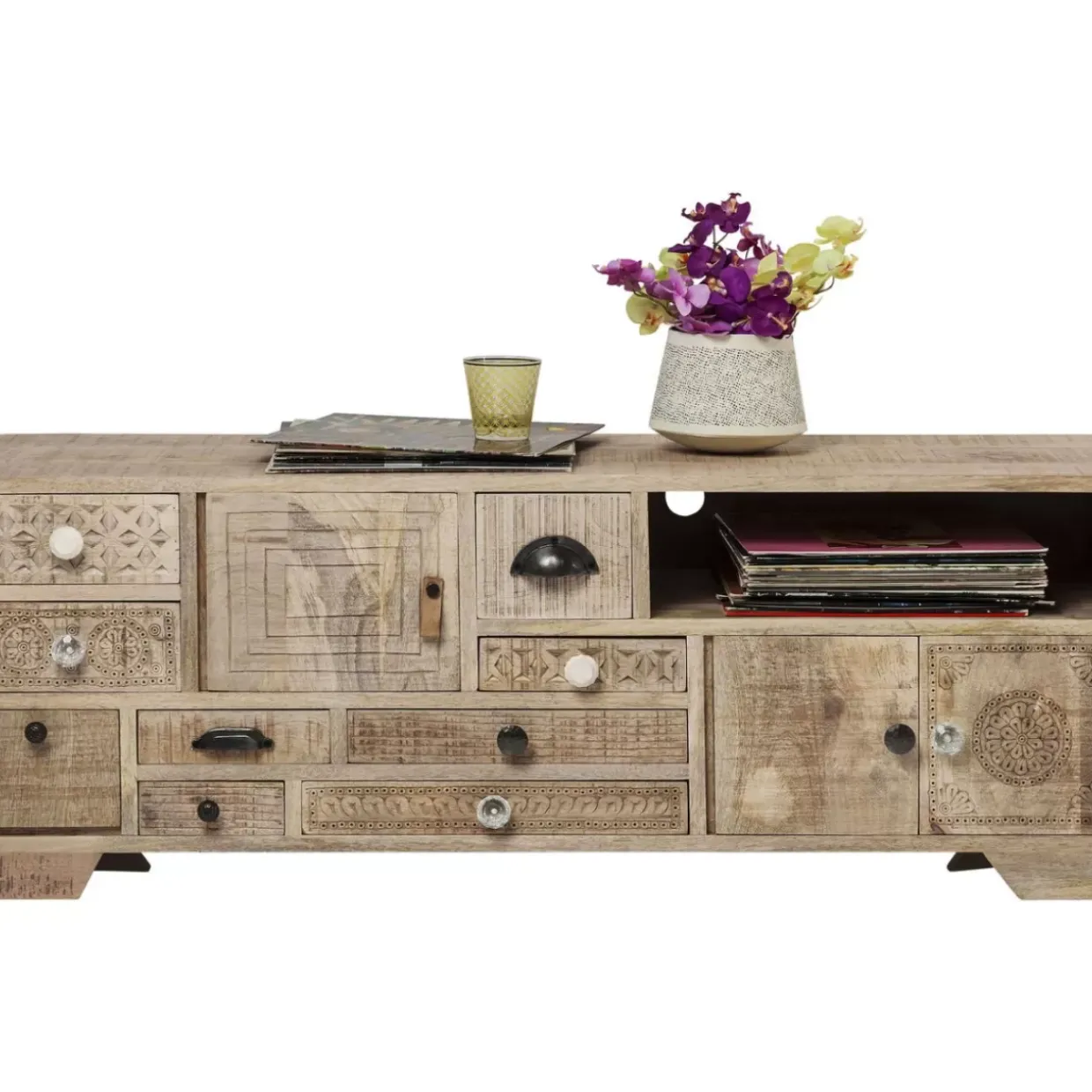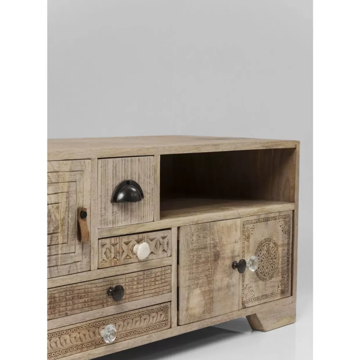 - Handgefertigtes Tv-Board Aus Mango-Massivholz Mit Neun Schuben,Drei Turen Mit Einem Boden Dahinter,Einem Offenen Boden Und Kabeldurchlass Hinten