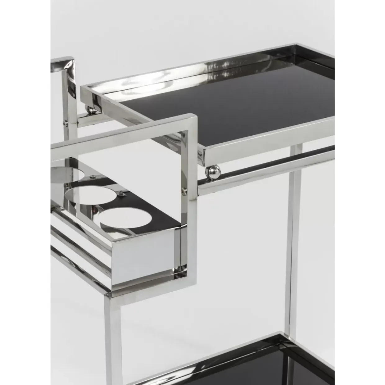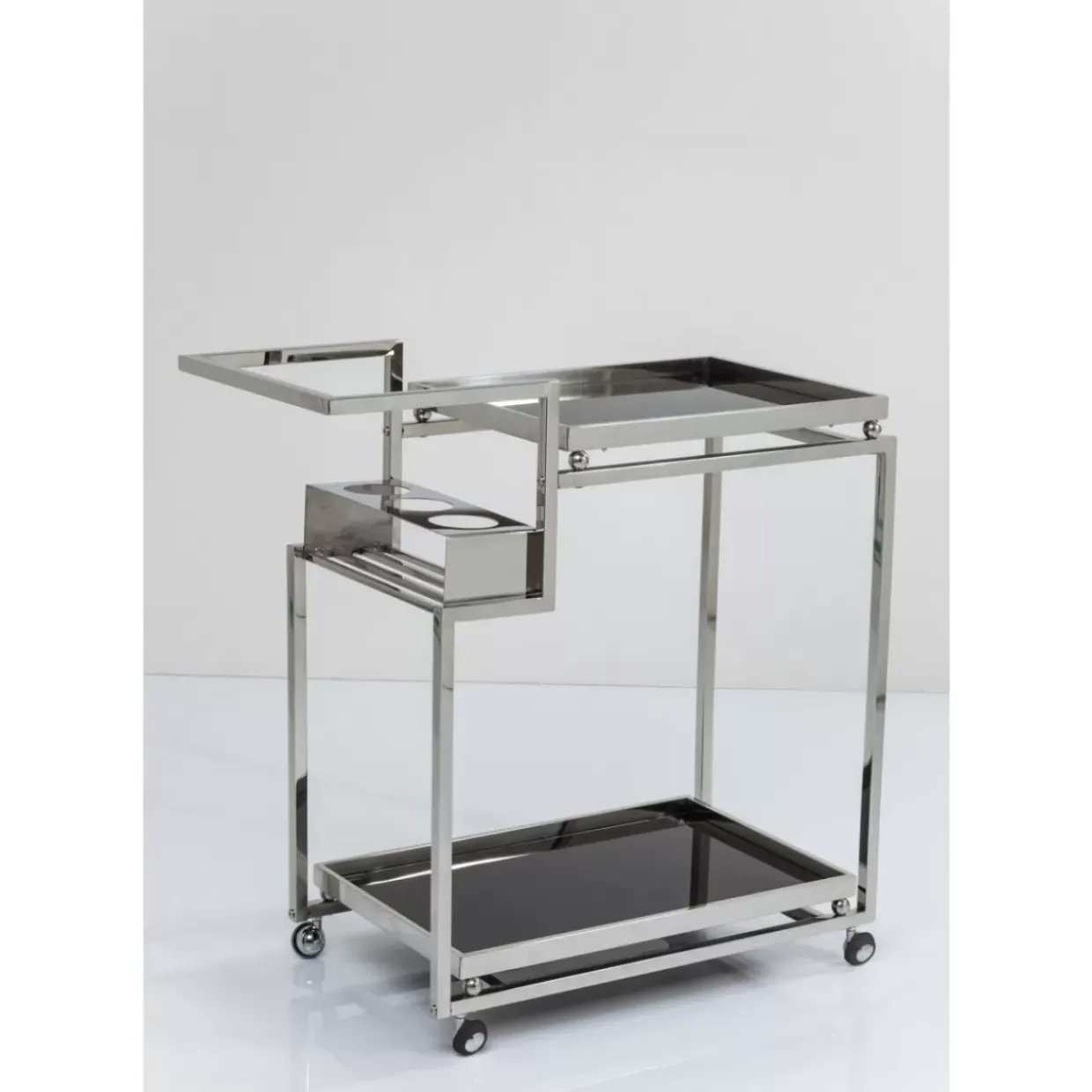- Edler,Silberner Barwagen Aus Verchromtem Stahl Mit Schwarz-Gefarbtem Glas Und Praktischen Rollen