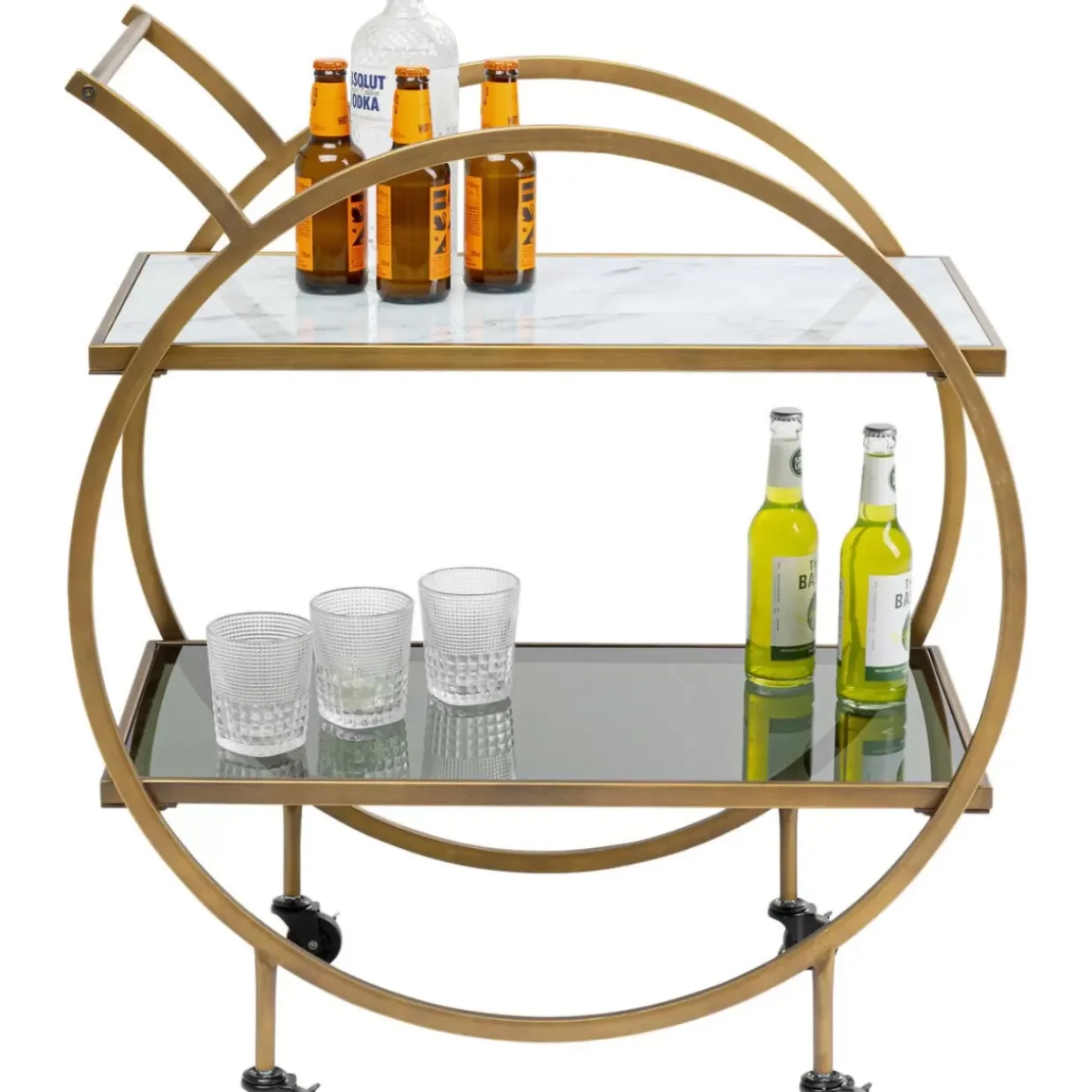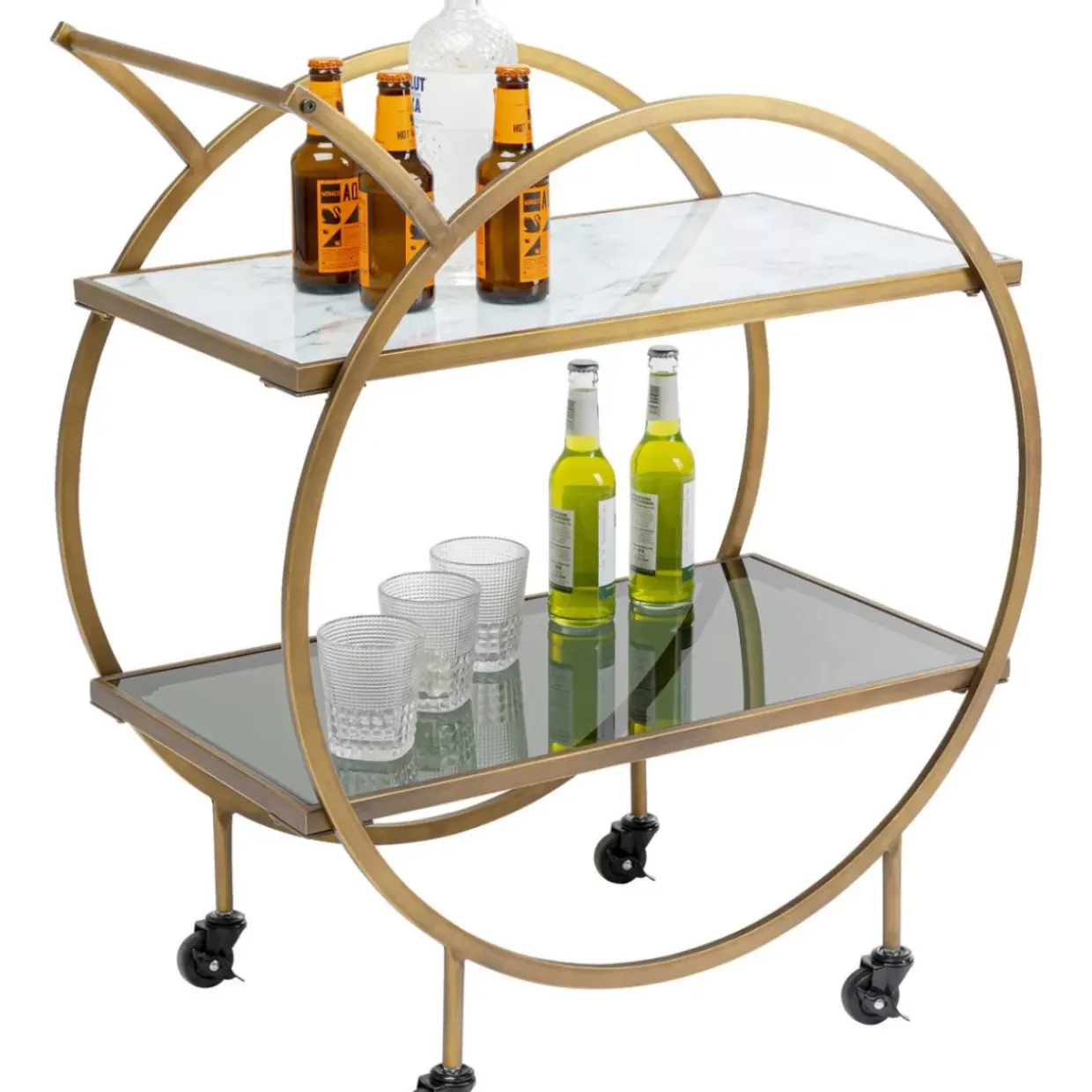 - Eleganter Servierwagen In Messing-Und Marmor-Look Mit Einem Hauch Retro-Design