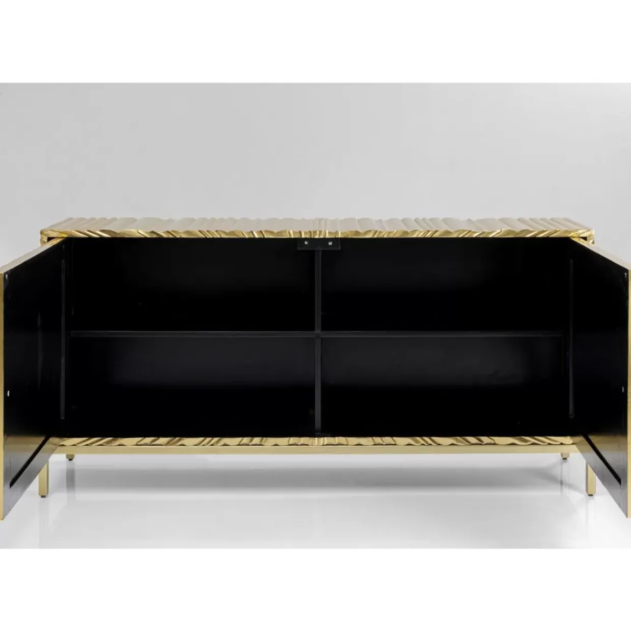 - Glanzvolles,Goldenes Sideboard Mit Reliefoberflachen Und Grunen Griffen