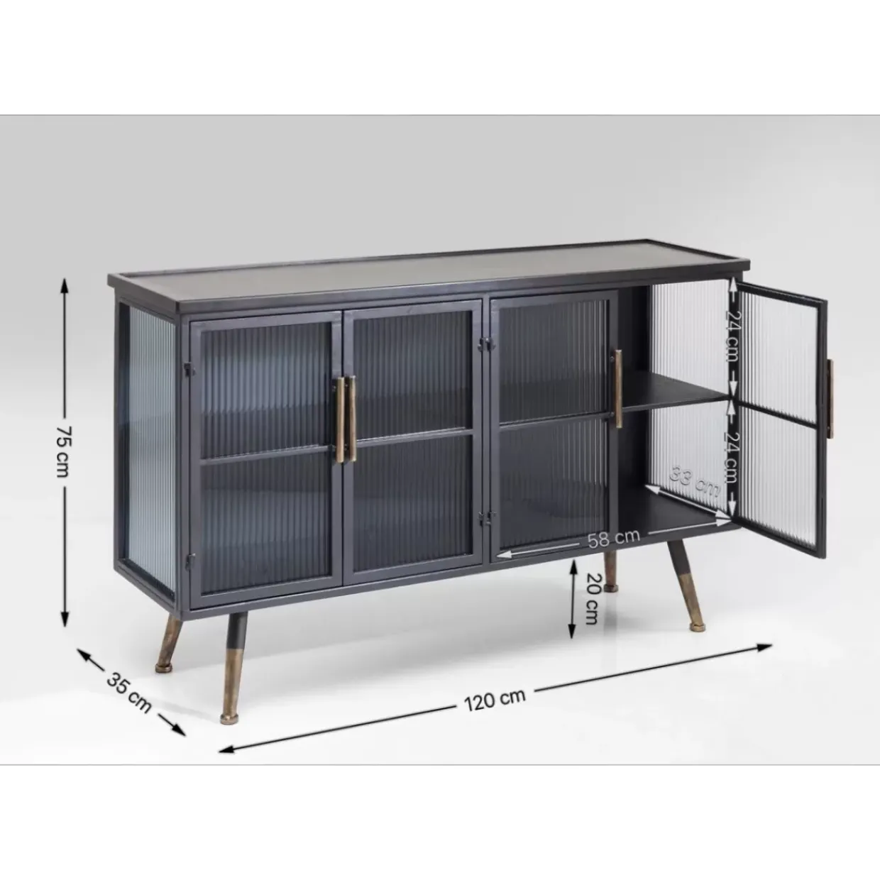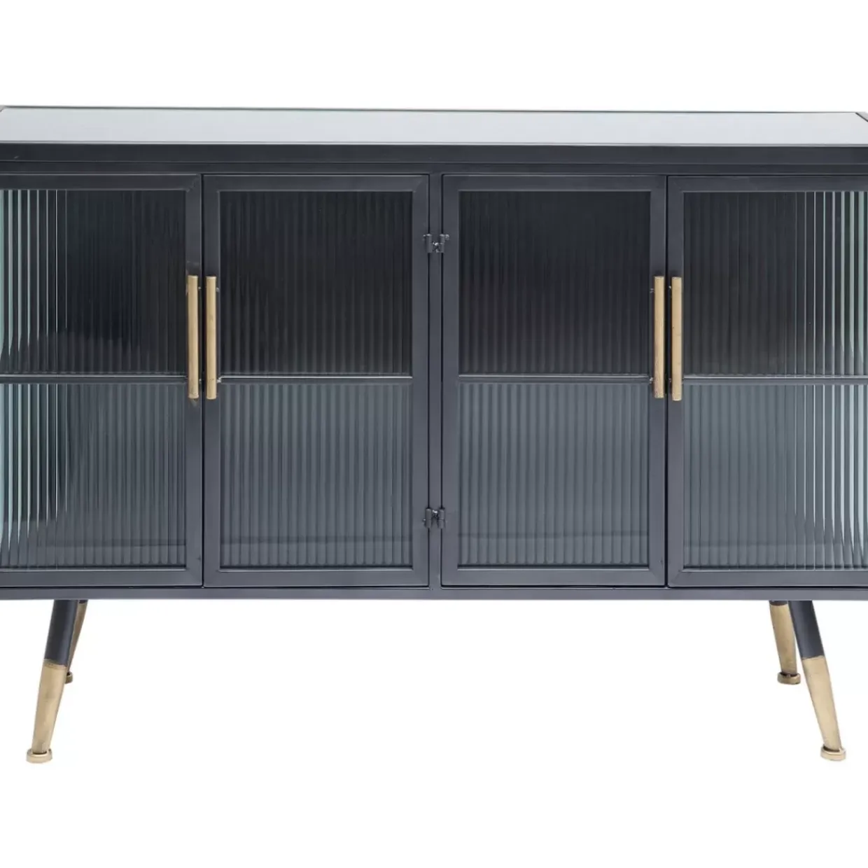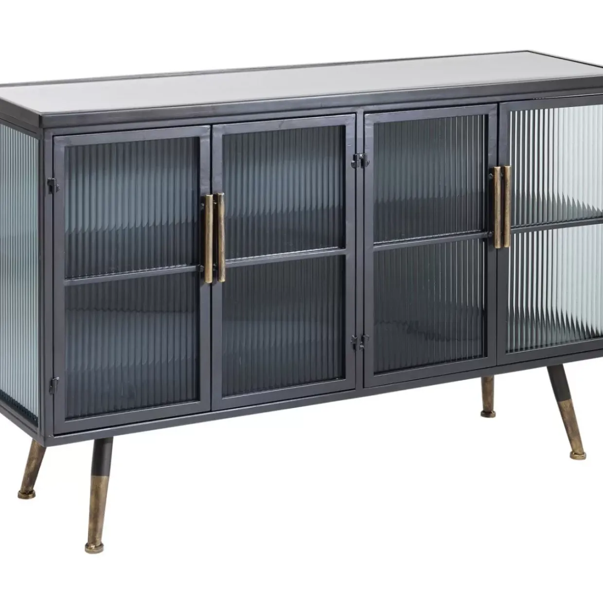 - Kleines Sideboard Im Understatement-Look Aus Schwarzem Stahl Mit Glaselementen Und Messingfarbenen Akzenten