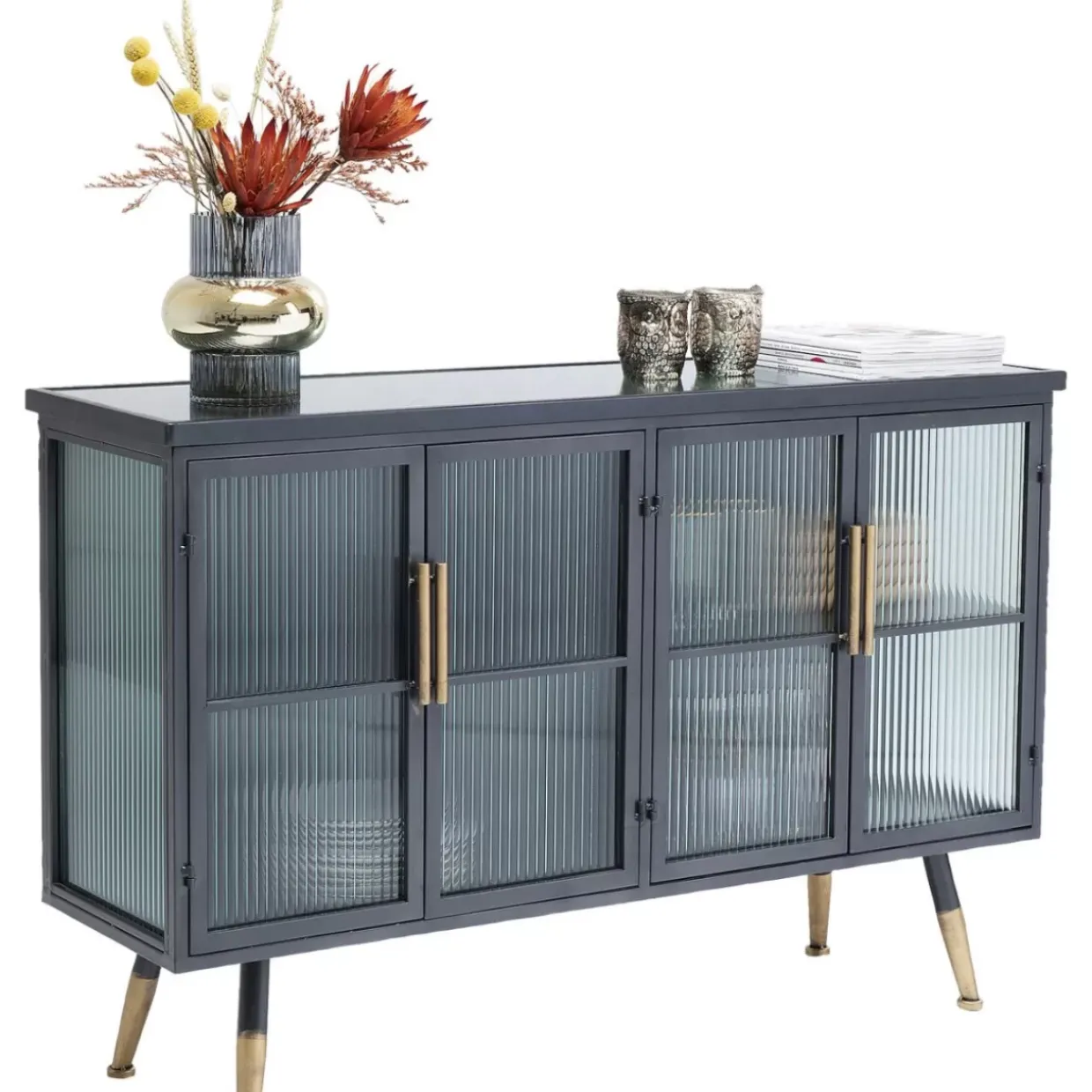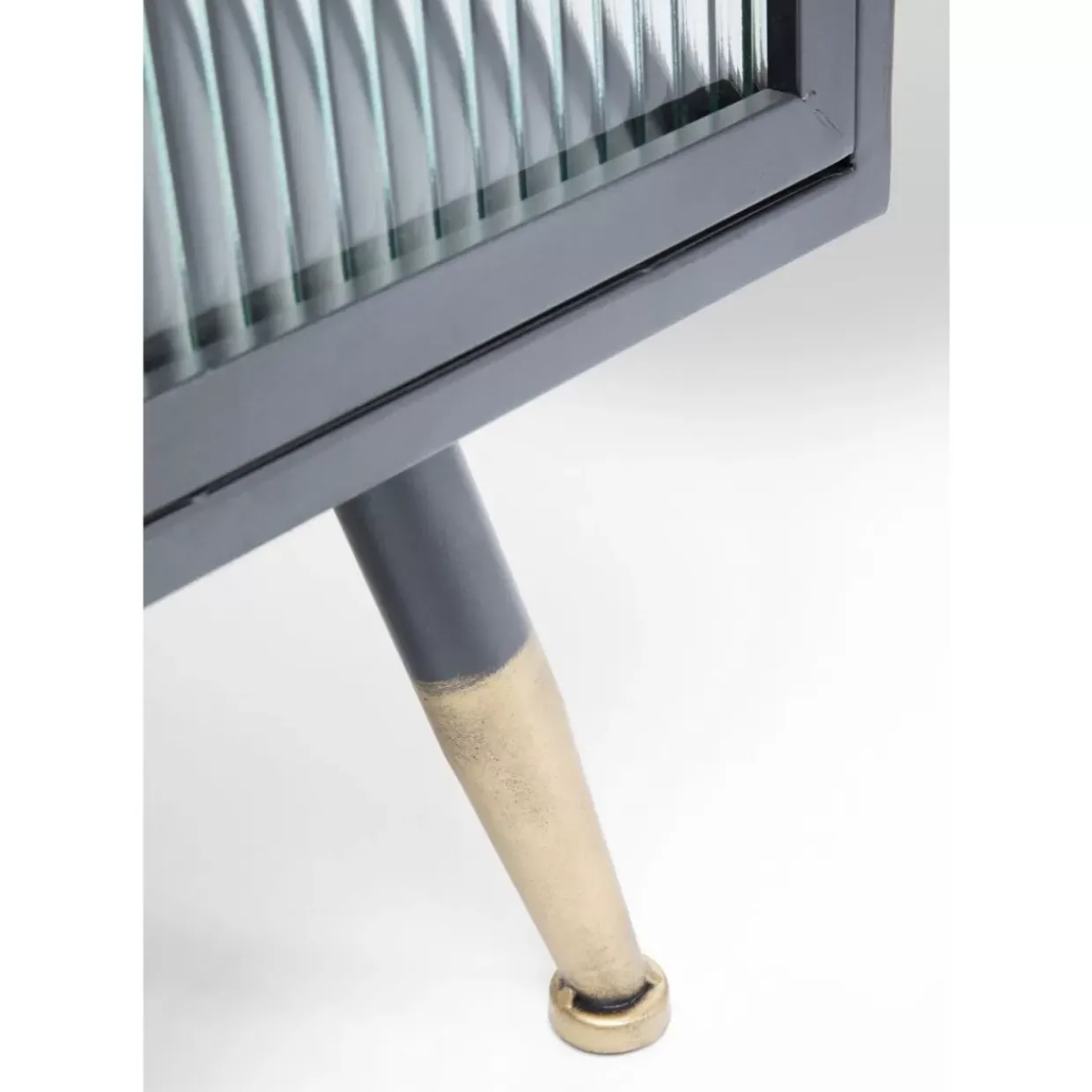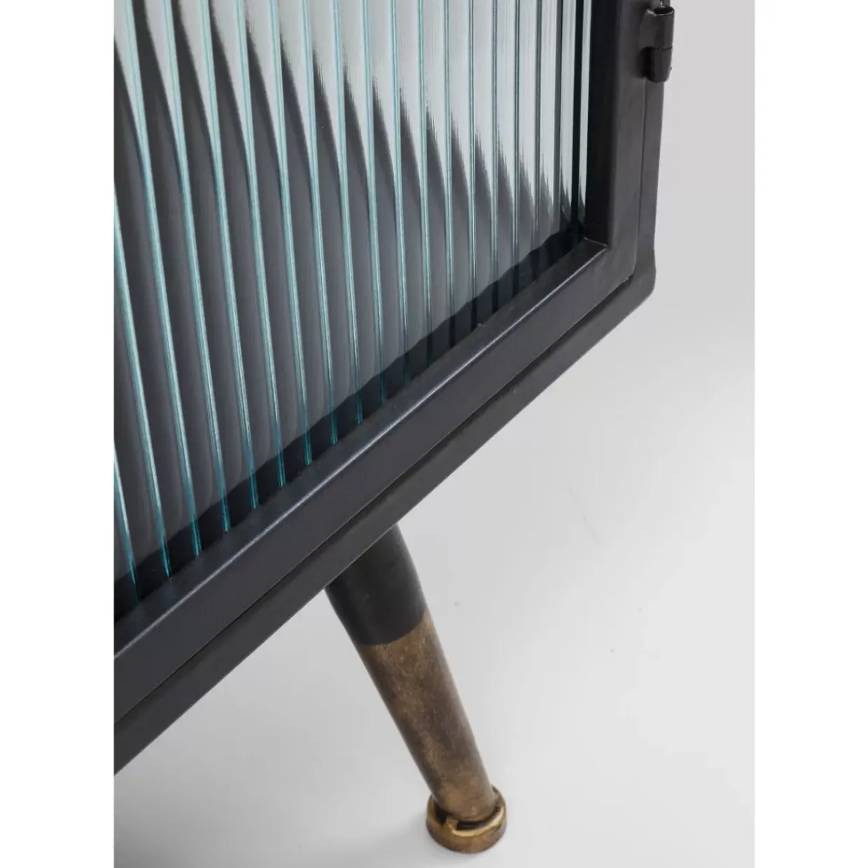 - Kleines Sideboard Im Understatement-Look Aus Schwarzem Stahl Mit Glaselementen Und Messingfarbenen Akzenten
