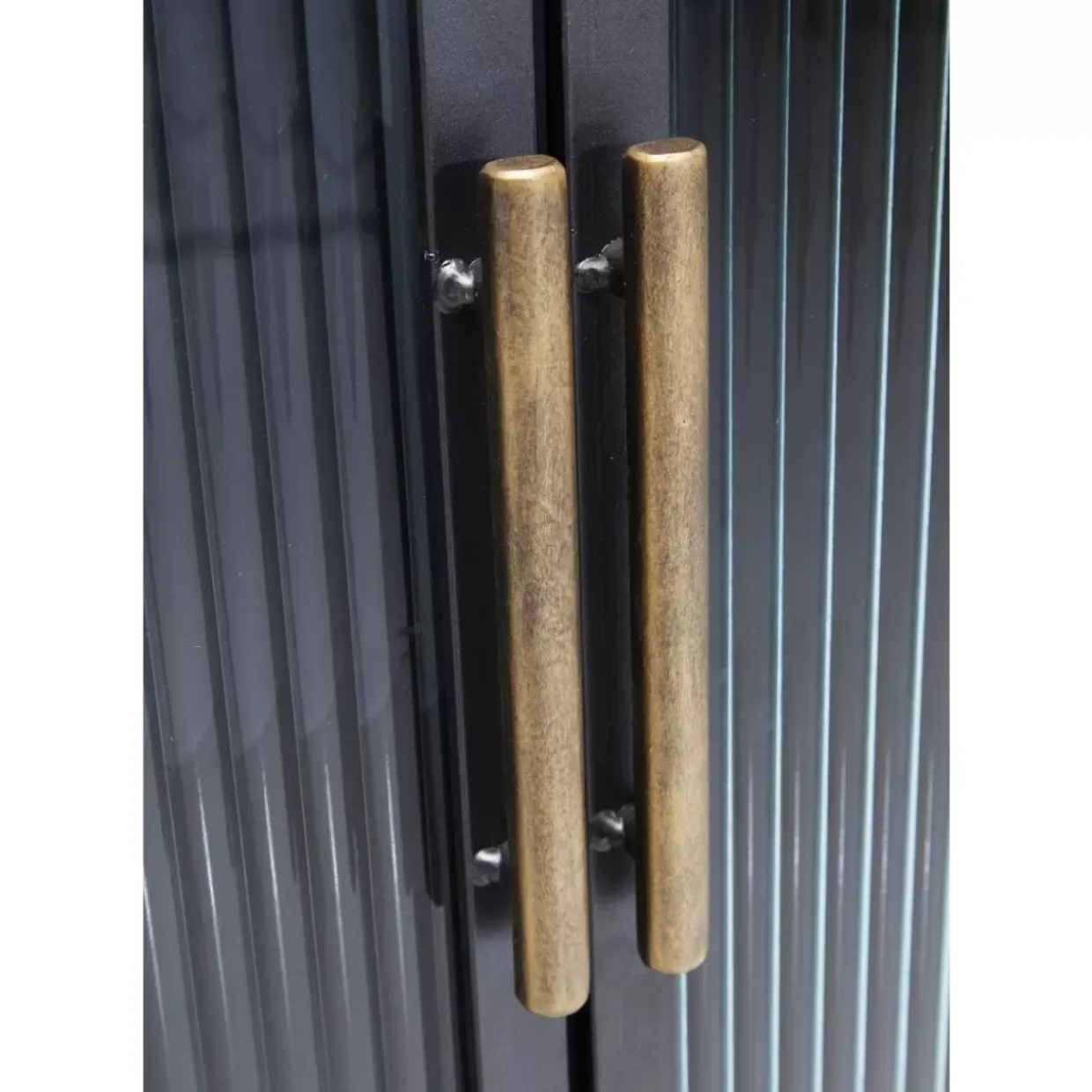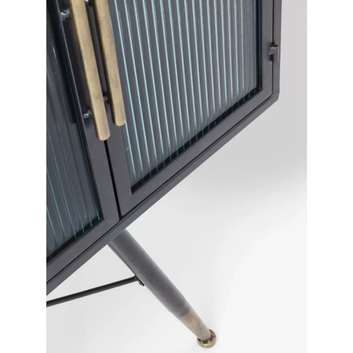 - Cooler Und Absolut Zeitloser Material-Mix Aus Stahl Und Geriffeltem Glas. Schmuckendes Detail: Die Messingfarbenen Griffe Und Fuse