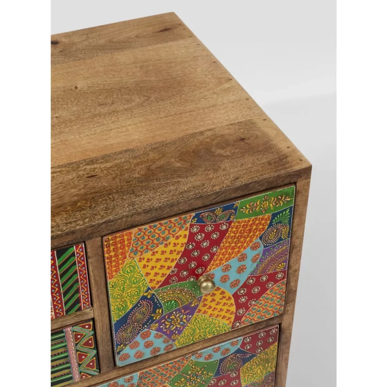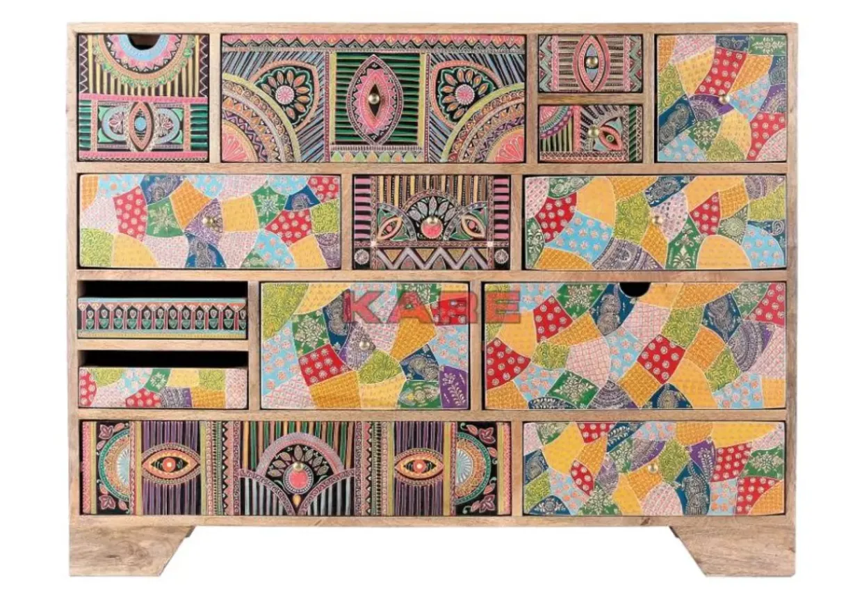- Handgearbeitetes Holz-Sideboard Mit Sehr Viel Stauraum Und Vor Allem Einer Bunten Front Im Ethno-Stil