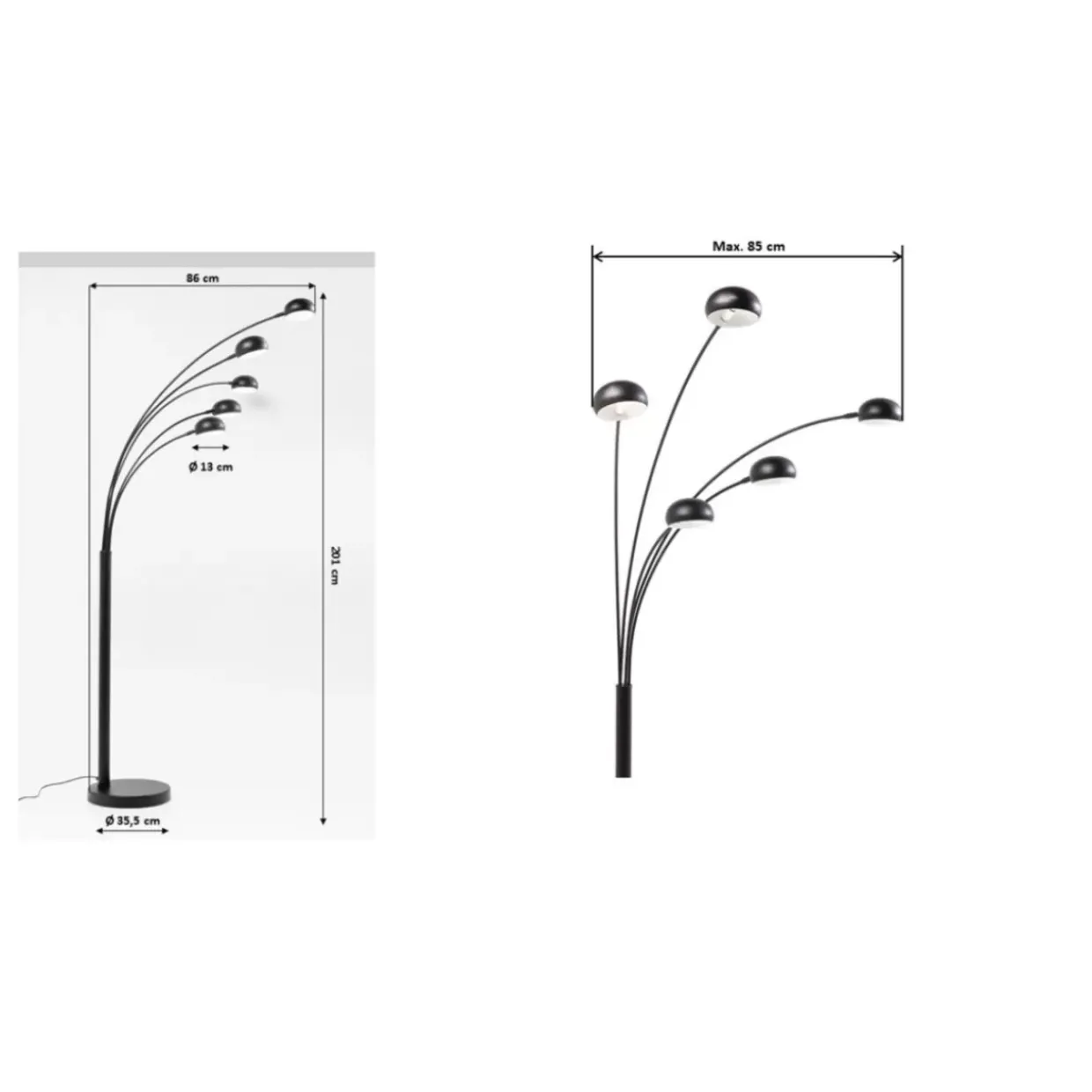 - Stehleuchte Aus Schwarz Lackiertem Stahl Mit Funf Lichtquellen