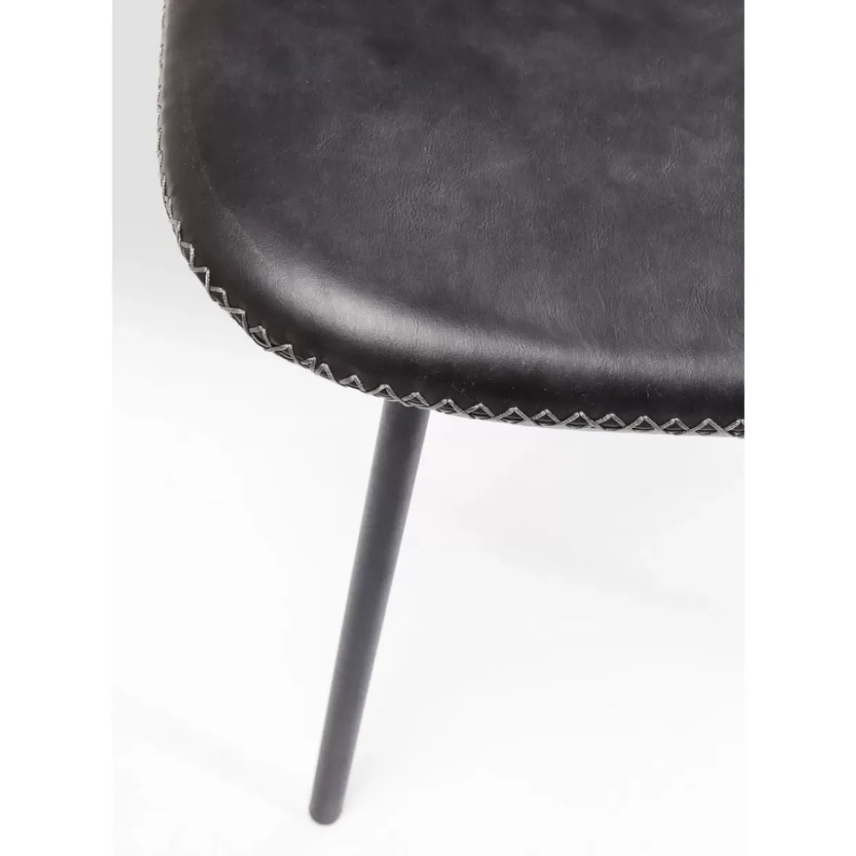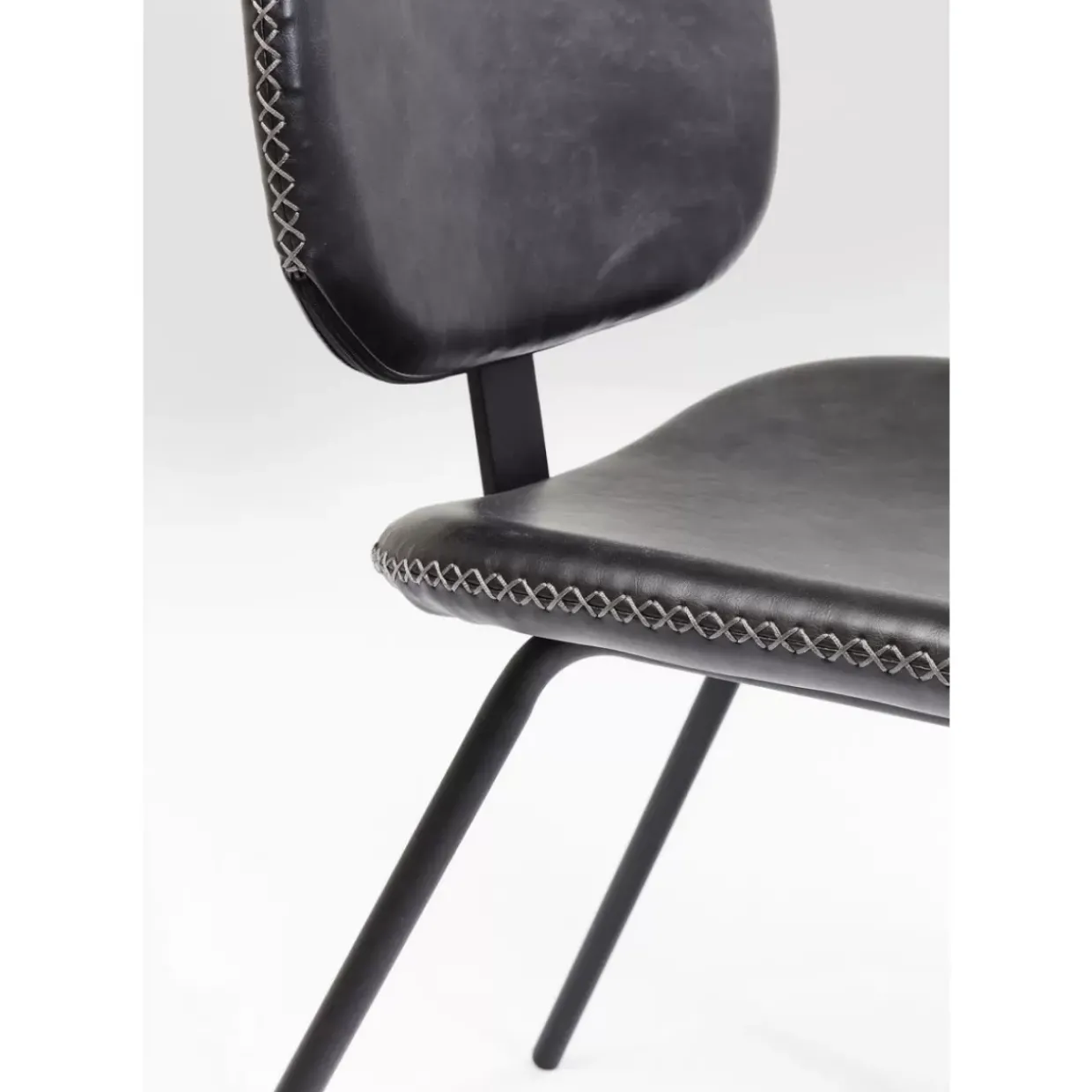 - Minimalistischer,Leicht Gepolsterter Stuhl Mit Schwarzem Kunstlederbezug Und Charakteristischer Kreuzstichnaht