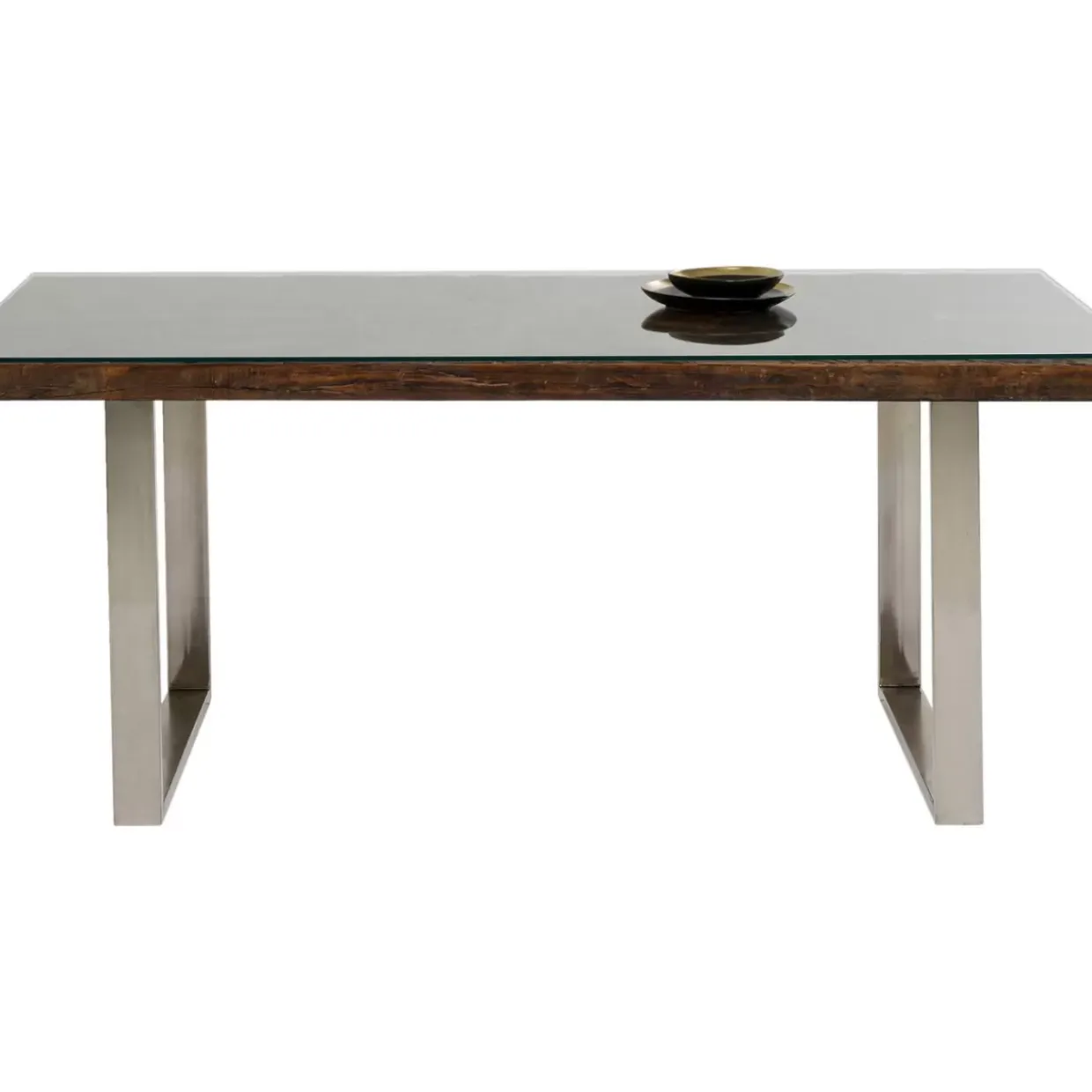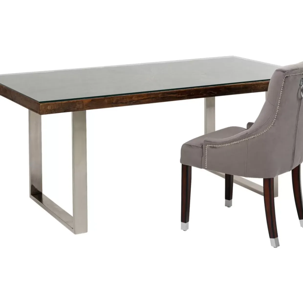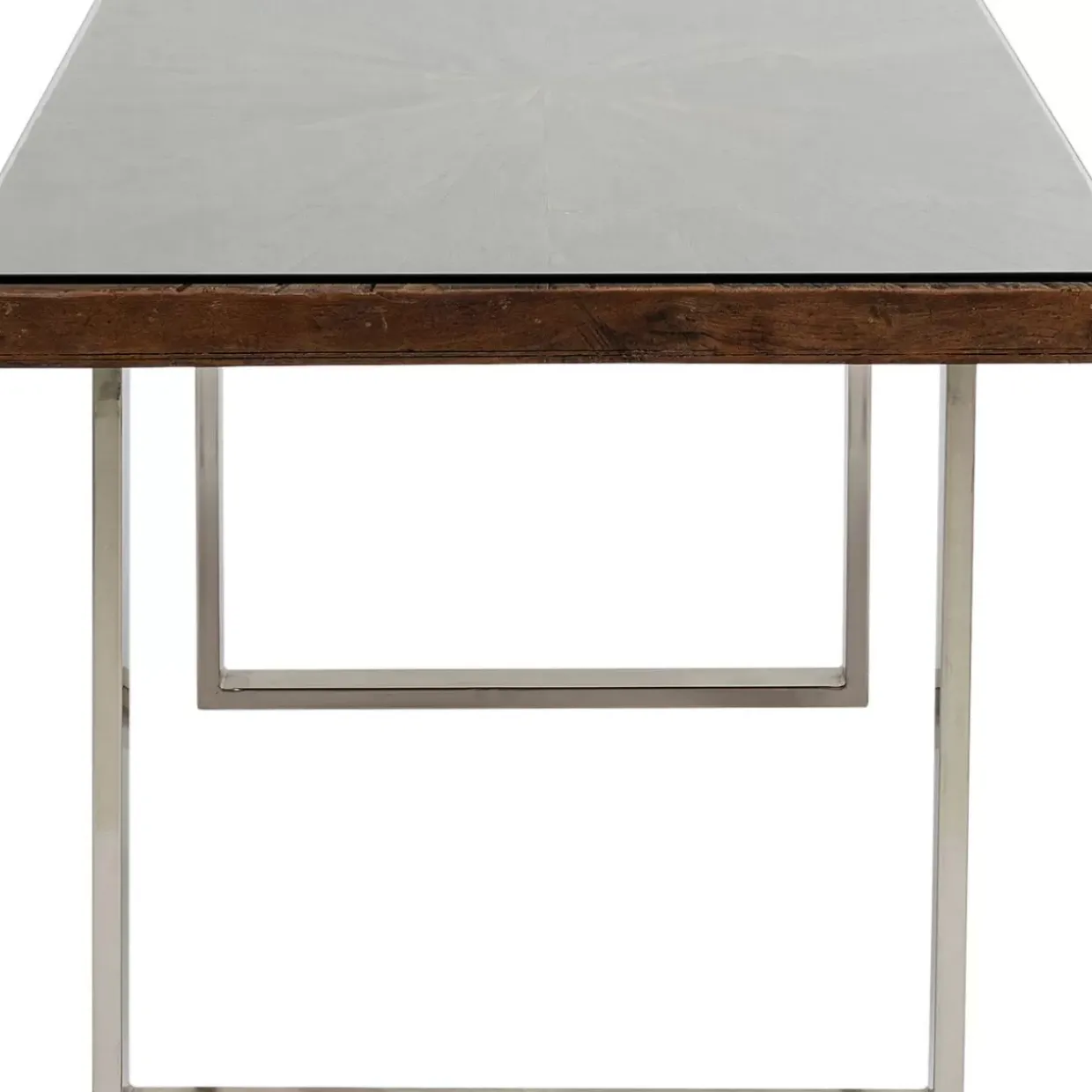 - Rechteckiger,Dunkler Esstisch Aus Recyceltem Mango-Und Akazienholz Mit Glasplatte Und Verchromten Kufen