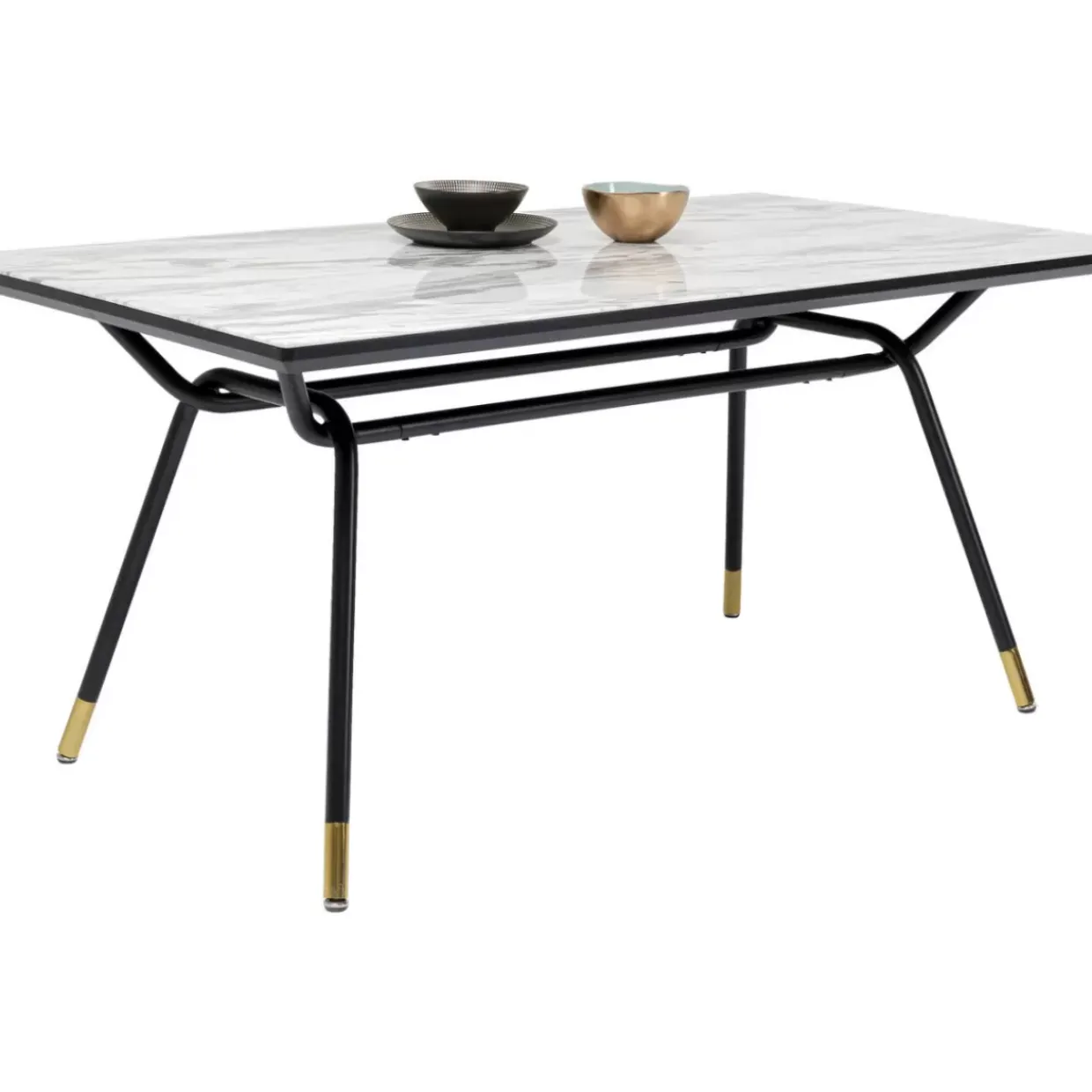 - Rechteckiger Esstisch Mit Tischplatte Im Marmor-Look,Schwarzem Stahlgestell Und Messingfarbenen Fusmanschetten