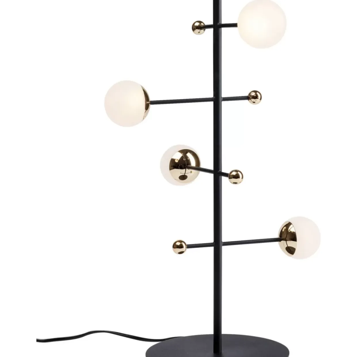 - Eine Tischleuchte Wie Ein Kosmisches Licht-Objekt Mit Stabilem,Schwarzem Leuchtenfus Aus Stahl
